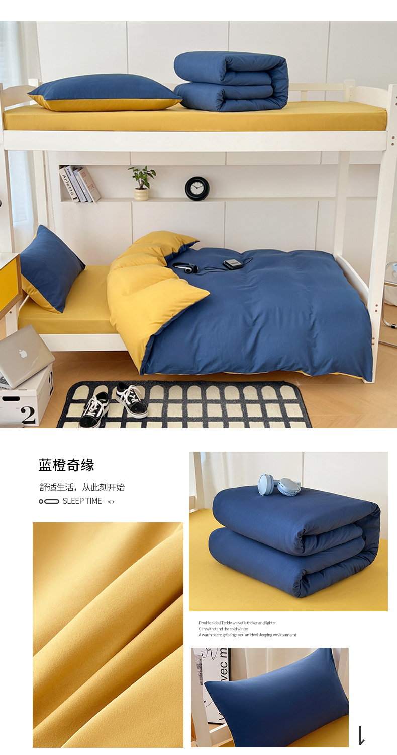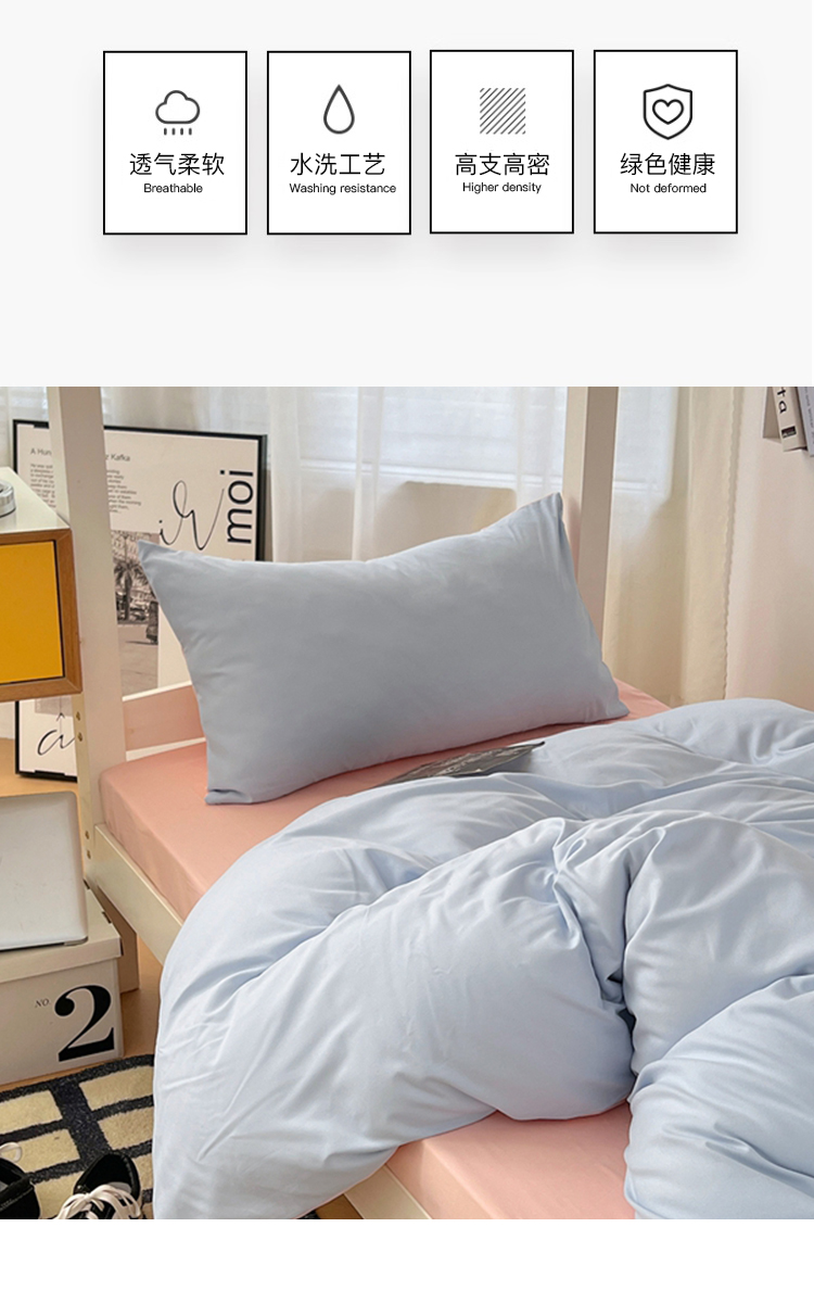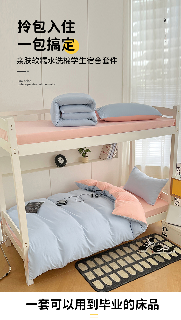 商品名称:(总)2025新款纯色双拼水洗棉床上四件套学生宿舍单人床单被套三件套