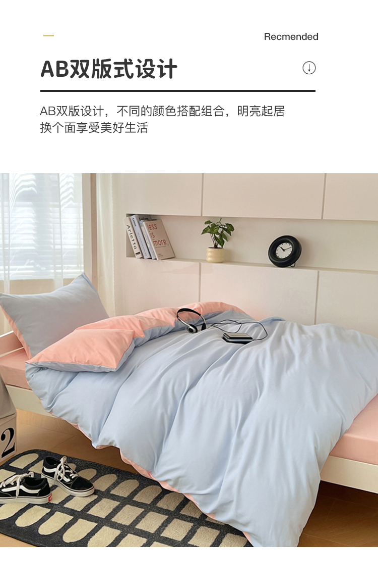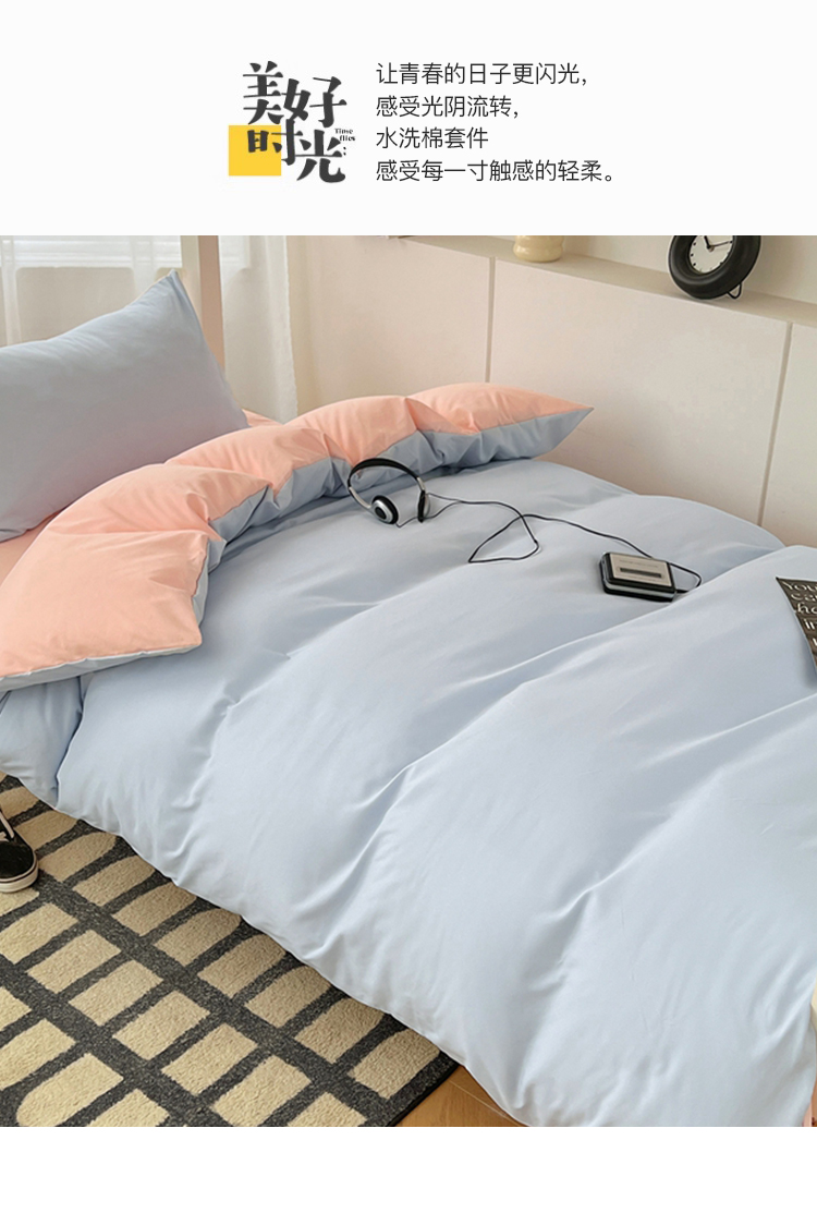 (总)2025新款纯色双拼水洗棉床上四件套学生宿舍单人床单被套三件套