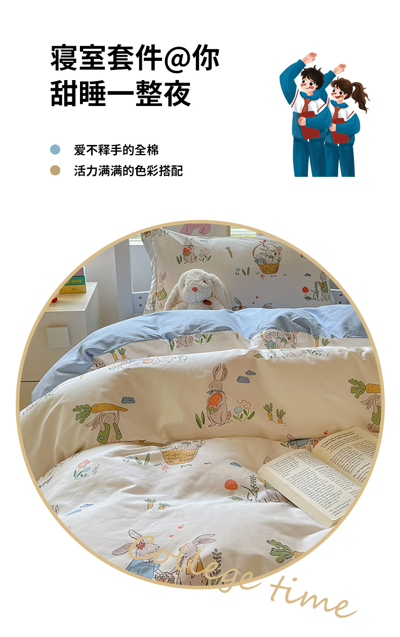 当前位置: 91家纺网 > 商品网购 > 床品套件 > 四件套 > 全棉普通四件套 > 金鑫汇家纺 2025新款印花花型-学生上下铺三件套 收获满满-蓝