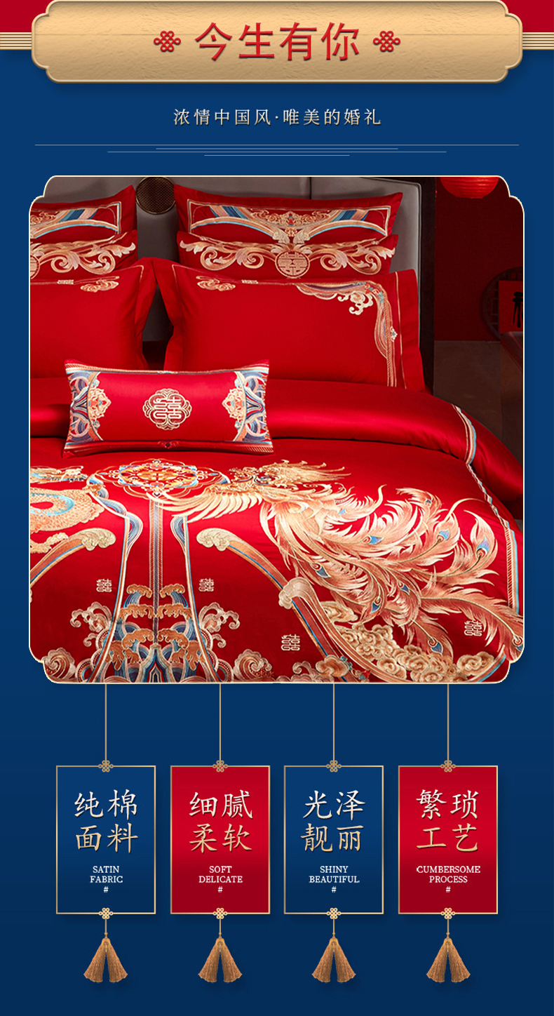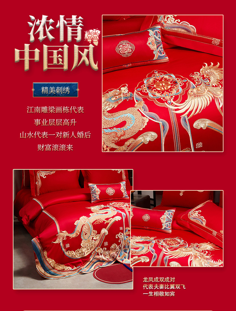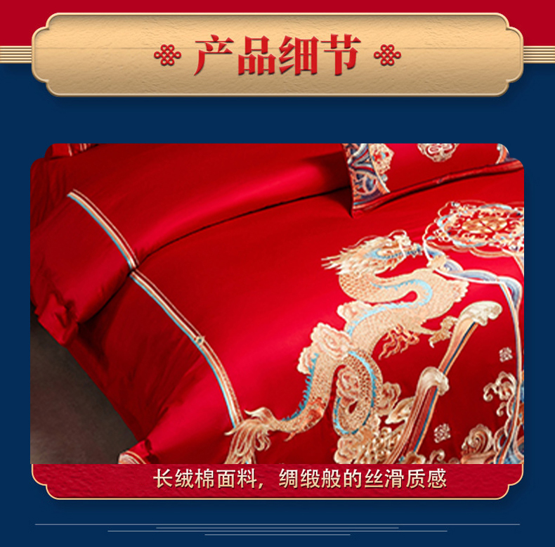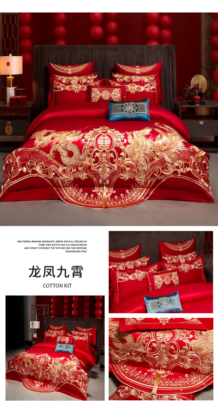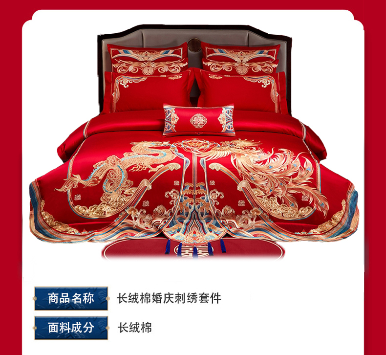 当前位置: 91家纺网 > 商品网购 > 床品套件 > 四件套 > 婚庆四件套 > 用心 2025年新款长绒棉重工绣花婚庆四件套多件套 龙凤九霄
