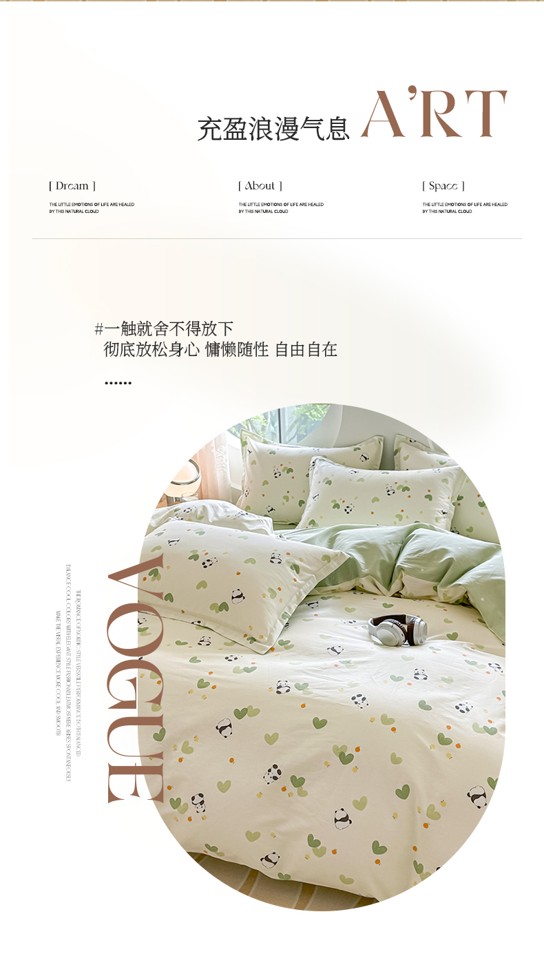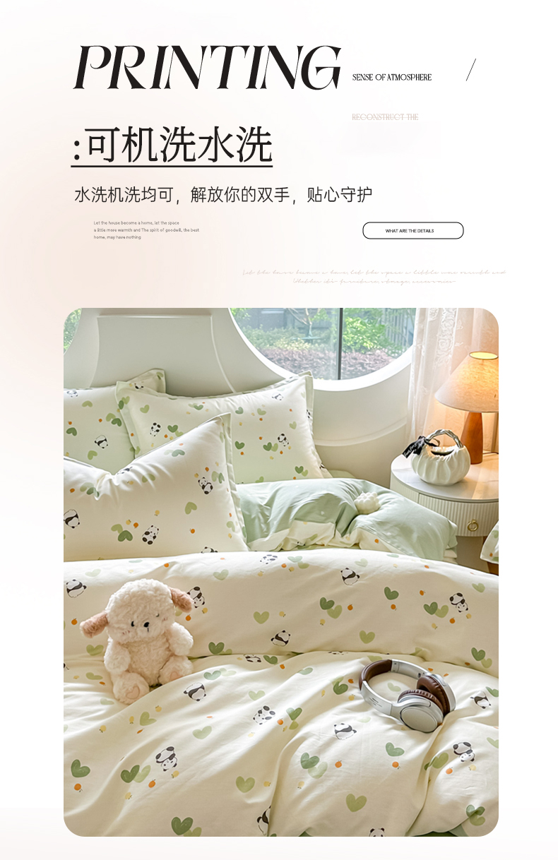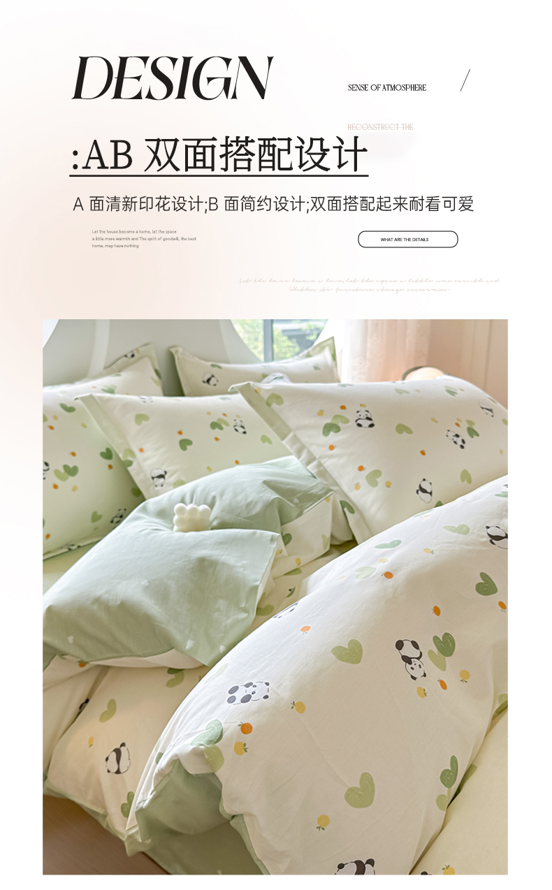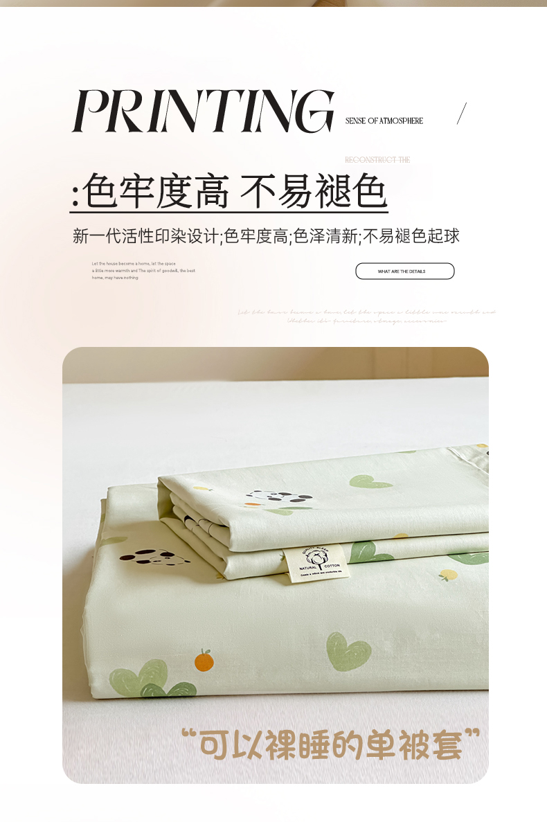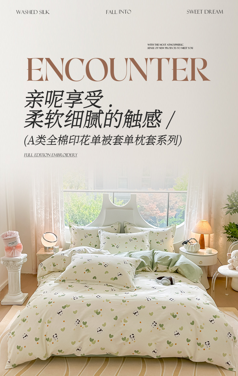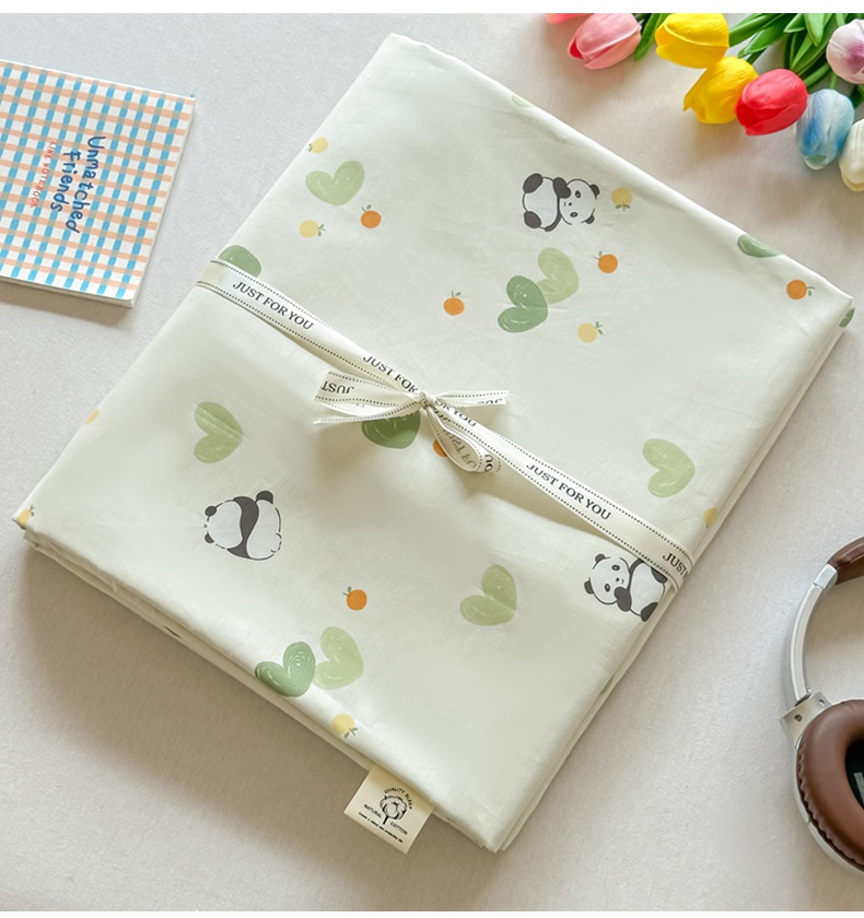 商品名称:芙绣家纺 2025新款A类全棉小清新印花单被套单枕套学生单品系列 熊猫盼盼