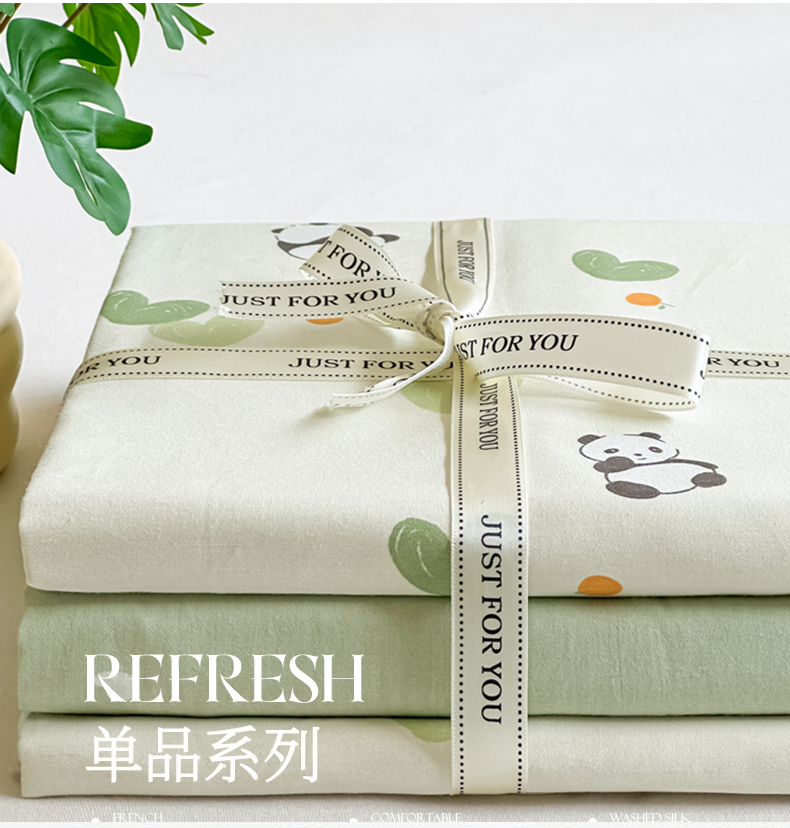 芙绣家纺 2025新款A类全棉小清新印花单被套单枕套学生单品系列 熊猫盼盼