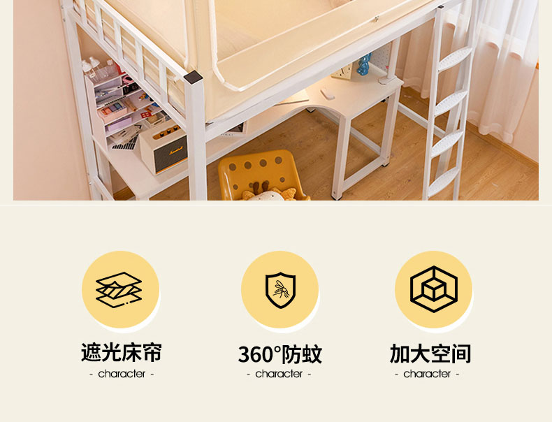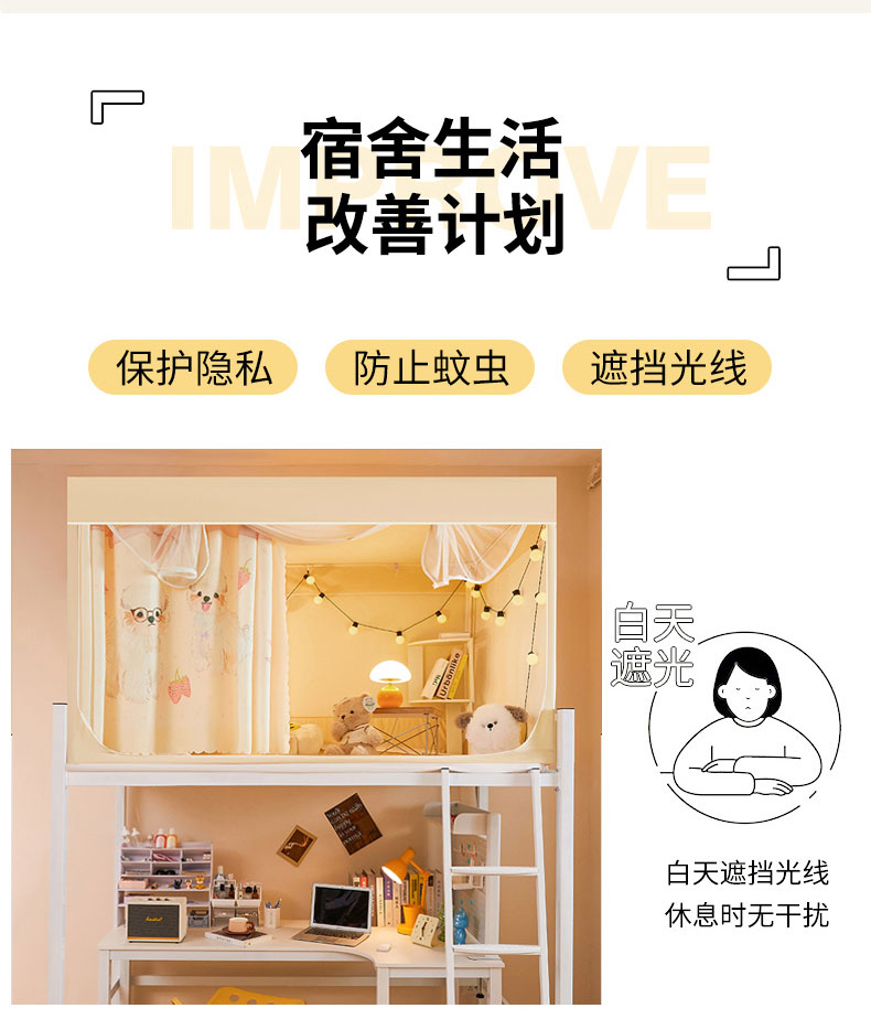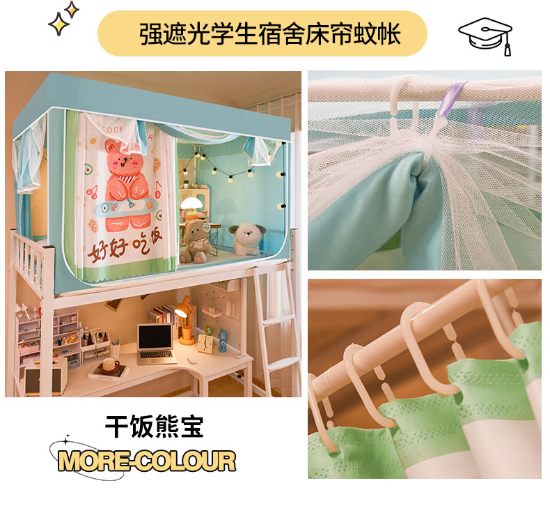 水妙家纺 2025年新款强遮光学生上下铺床帘蚊账 贝贝兔