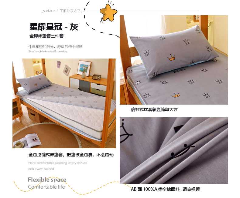 (总)水妙家纺 2025年新款A类全棉纯棉学生宿舍上下铺床垫套六件套三件套,床垫套安德鲁-蓝,床垫套布格熊-蓝,床垫套玛奇朵-灰,床垫套猫达人,床垫套念初-蓝,床垫套星耀皇冠-灰,床垫套宇格-蓝