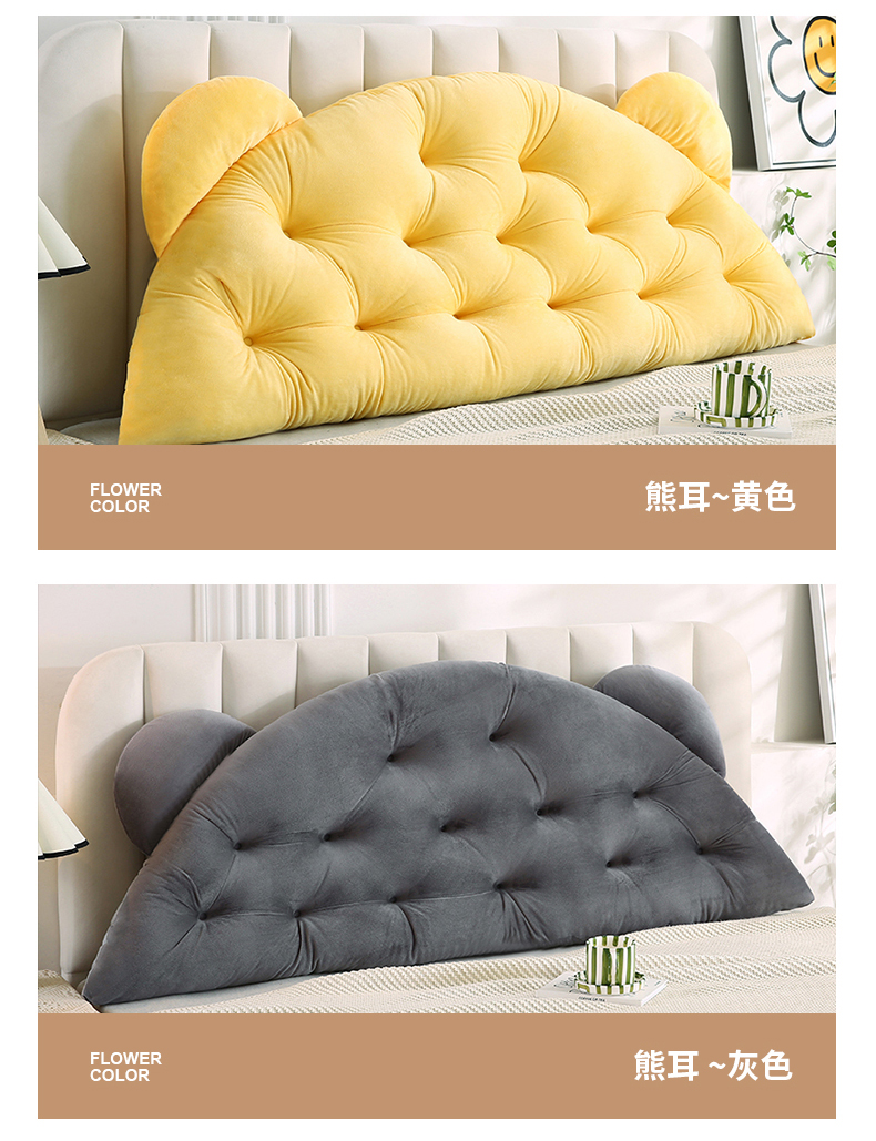 (总)永光家居 2025新款熊耳朵靠枕 床头靠垫抱枕榻榻米软包 (专利款 不供多多),熊耳 驼,熊耳 白,熊耳 豆沙,熊耳 黑,熊耳 黄,熊耳 灰,熊耳 绿,熊耳 玉