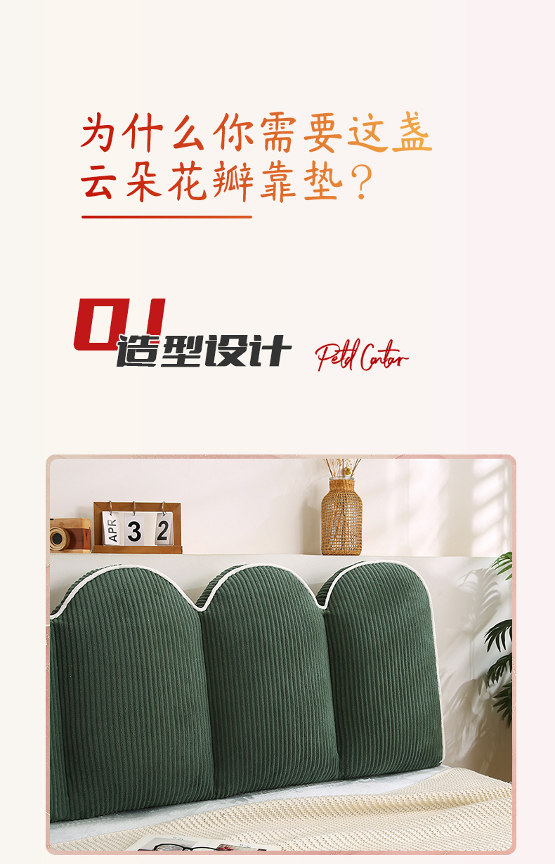 商品名称:永光家居 2025灯芯绒花瓣靠枕 高端床头靠垫抱枕榻榻米软包(不供多多) 组合图仅供展示