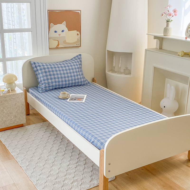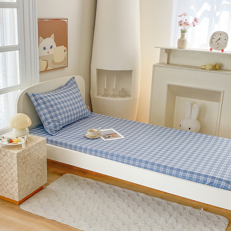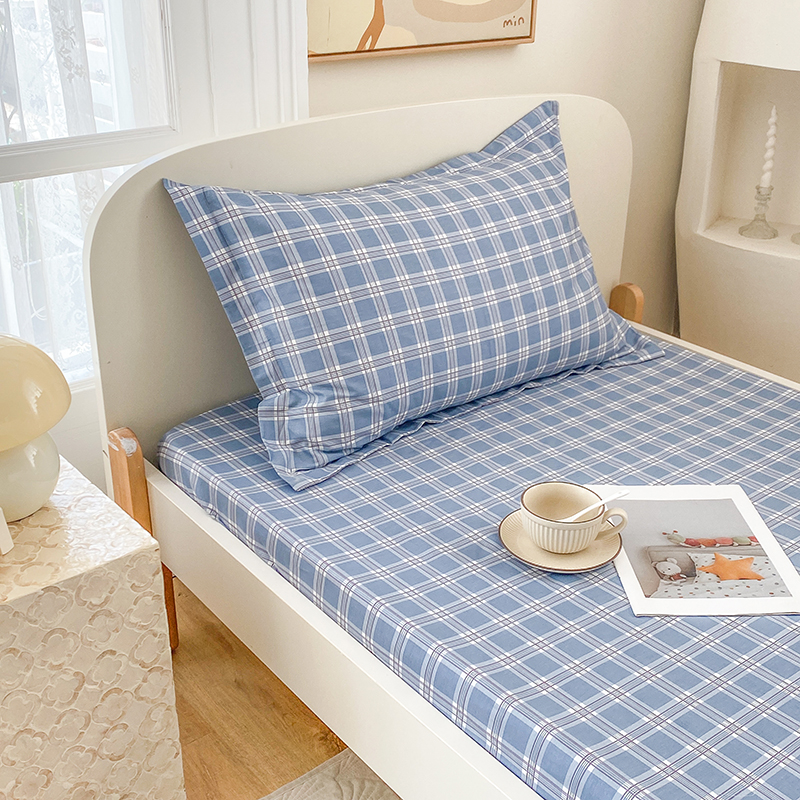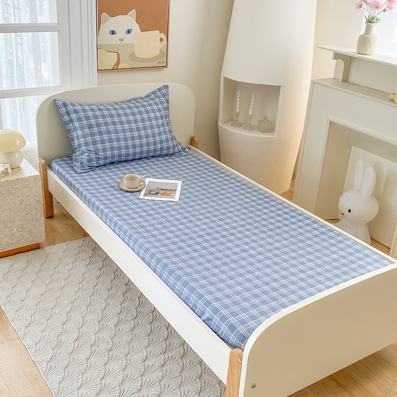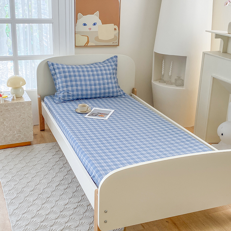 • 91家纺网 家纺一手货源 找家纺 凌云家纺 2025新款A类13372全棉学生床笠 麦田蓝