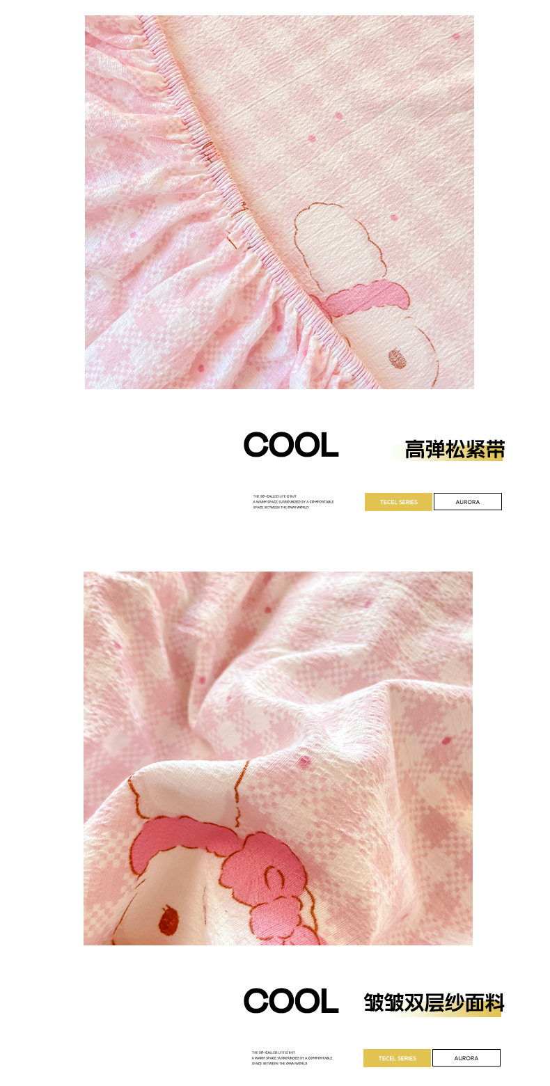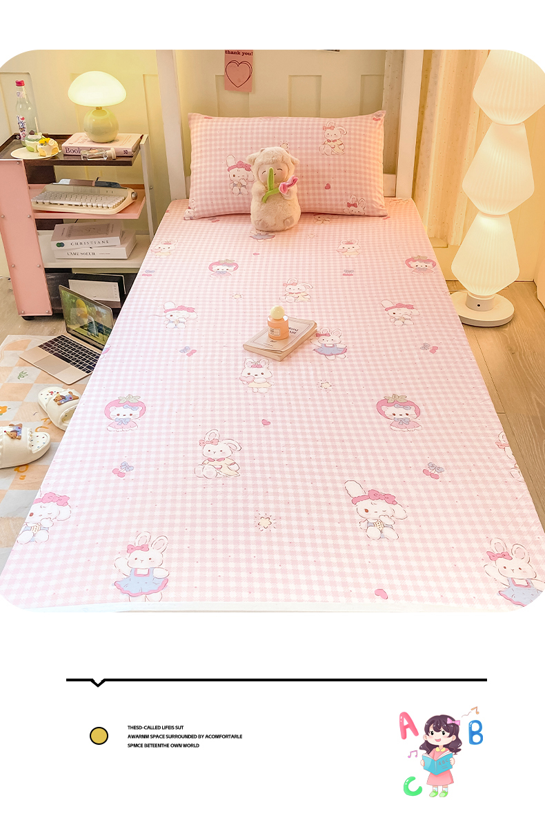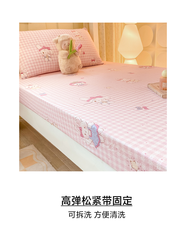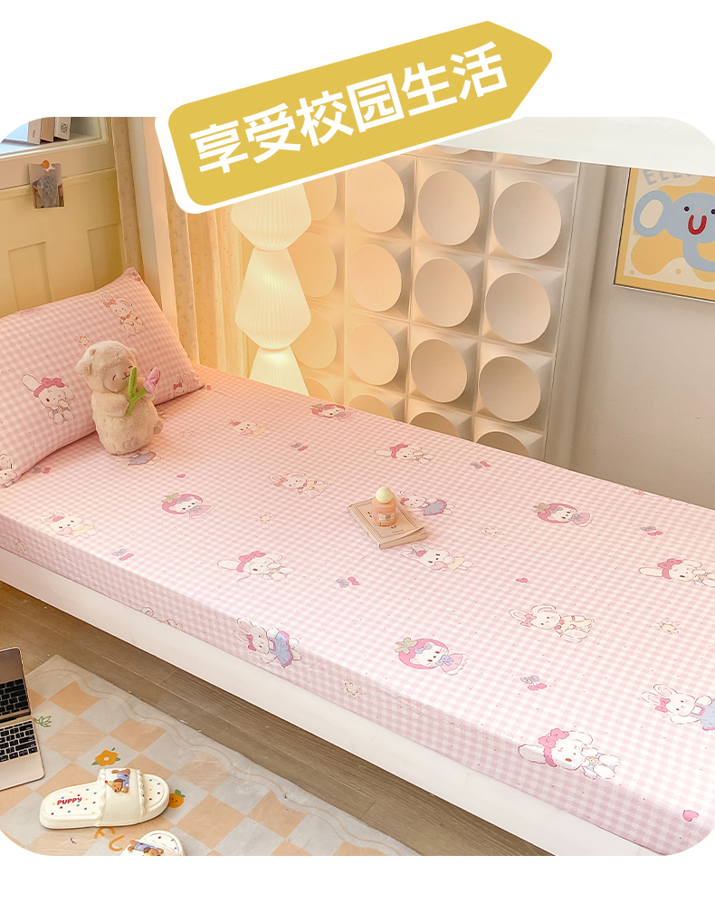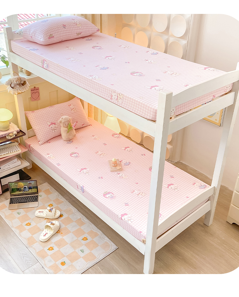 • 91家纺网 家纺一手货源 找家纺 眠势力 2025新款ins云感双层纱学生宿舍上下铺奶油风云感四季款单床笠床笠单件 乖乖兔