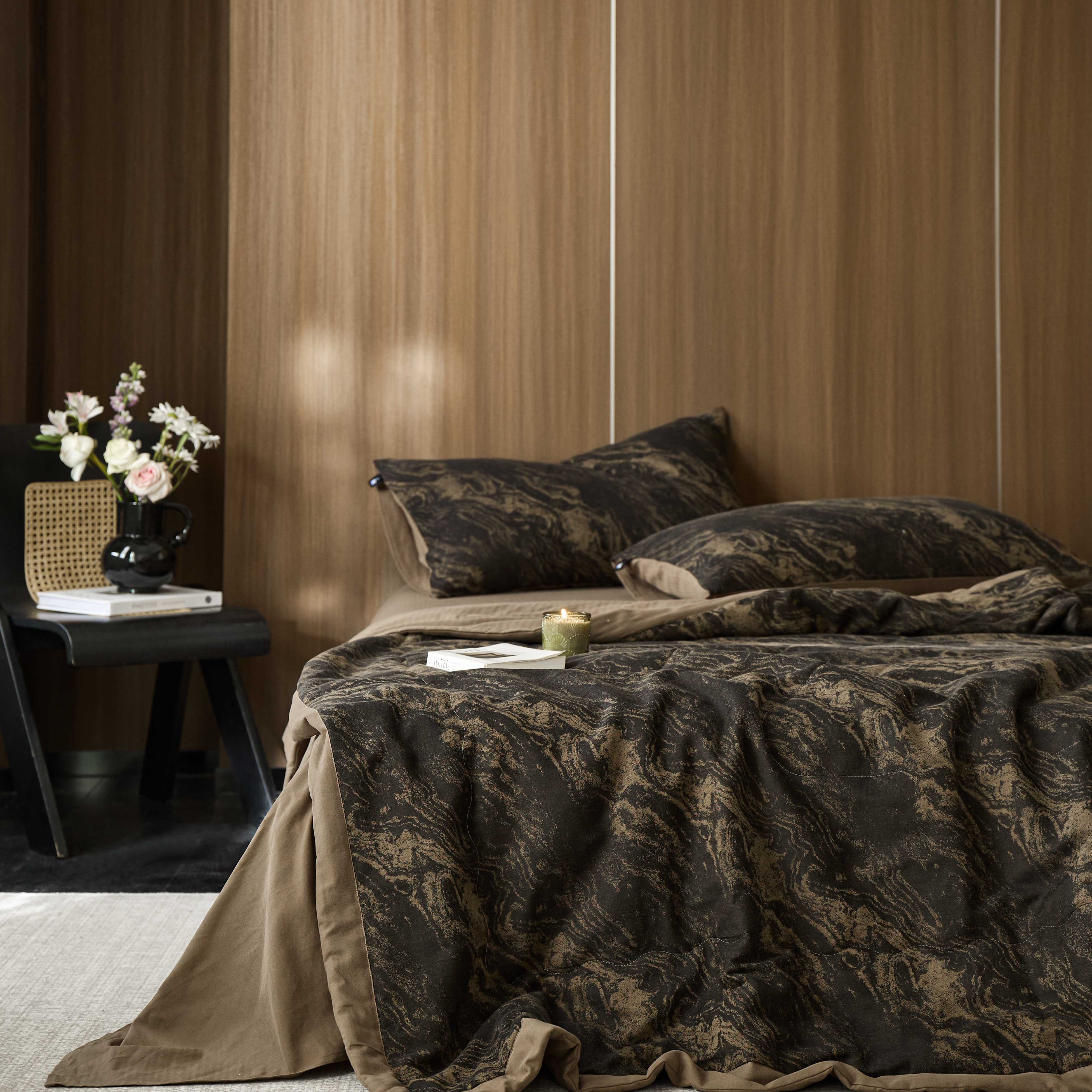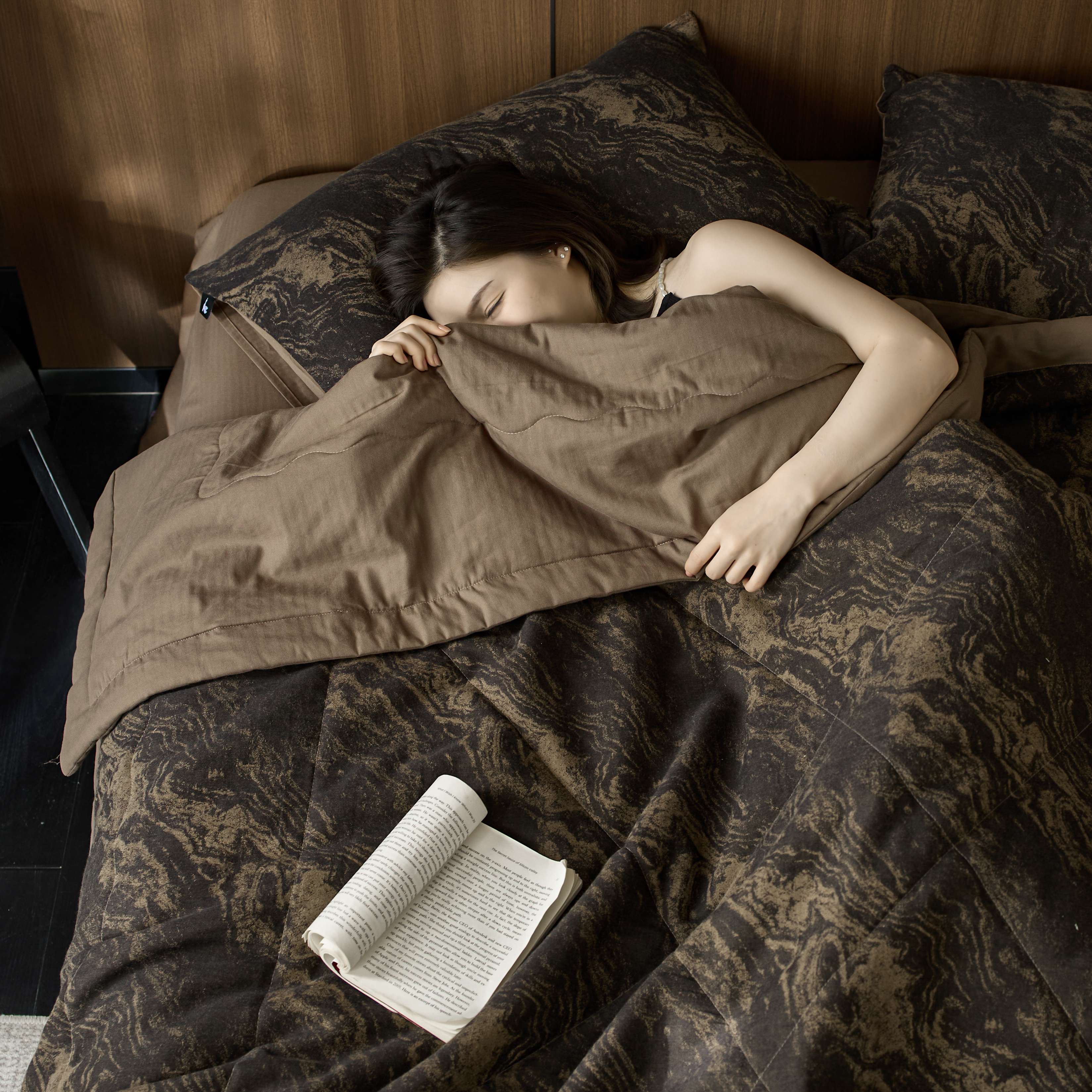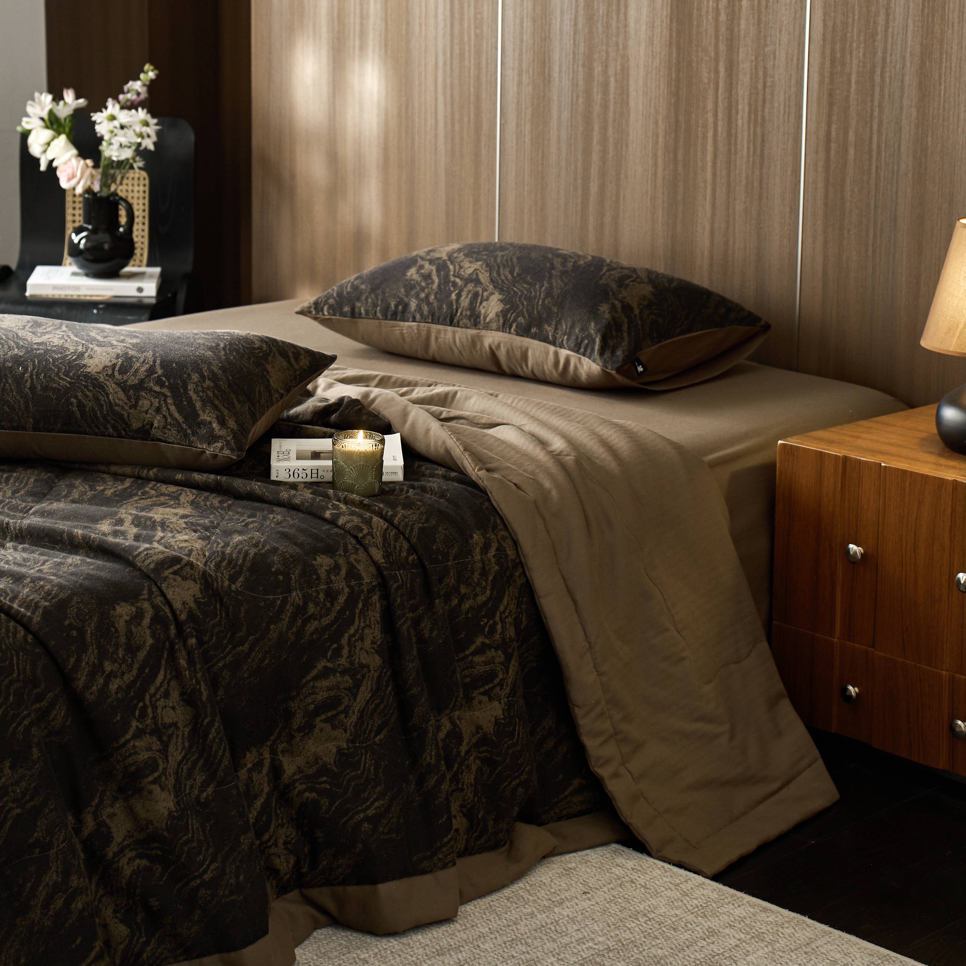 (总)安莱生活 2025春夏新款空气层色织提花四件套费尔岛系列,费尔岛-茶棕,费尔岛-咖啡,费尔岛-银灰