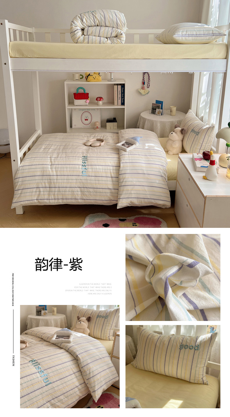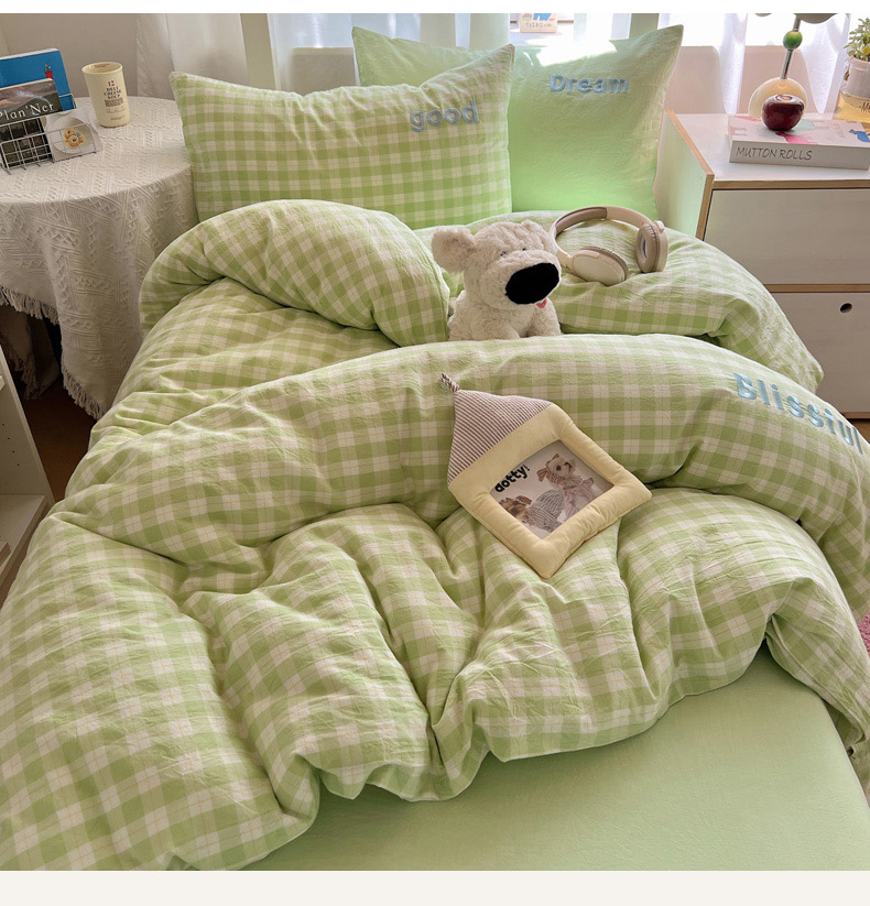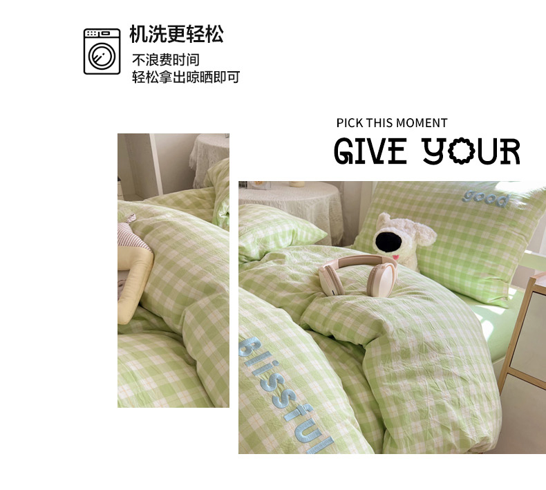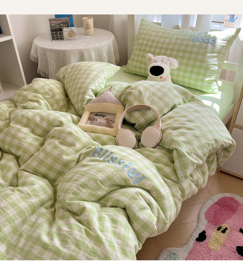 当前位置: 91家纺网 > 商品网购 > 床品套件 > 三件套 > 丽涵家纺 2025新款色织水洗棉刺绣学生三件套 尚格-绿