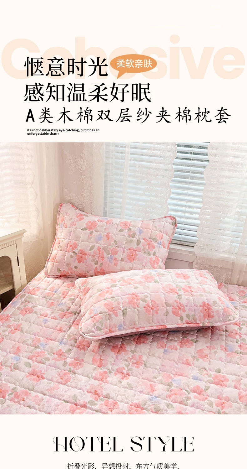 圣比熊 2025新款云感双层纱夹棉枕套宿舍单人枕芯套一对装加厚枕头套 倾城之恋