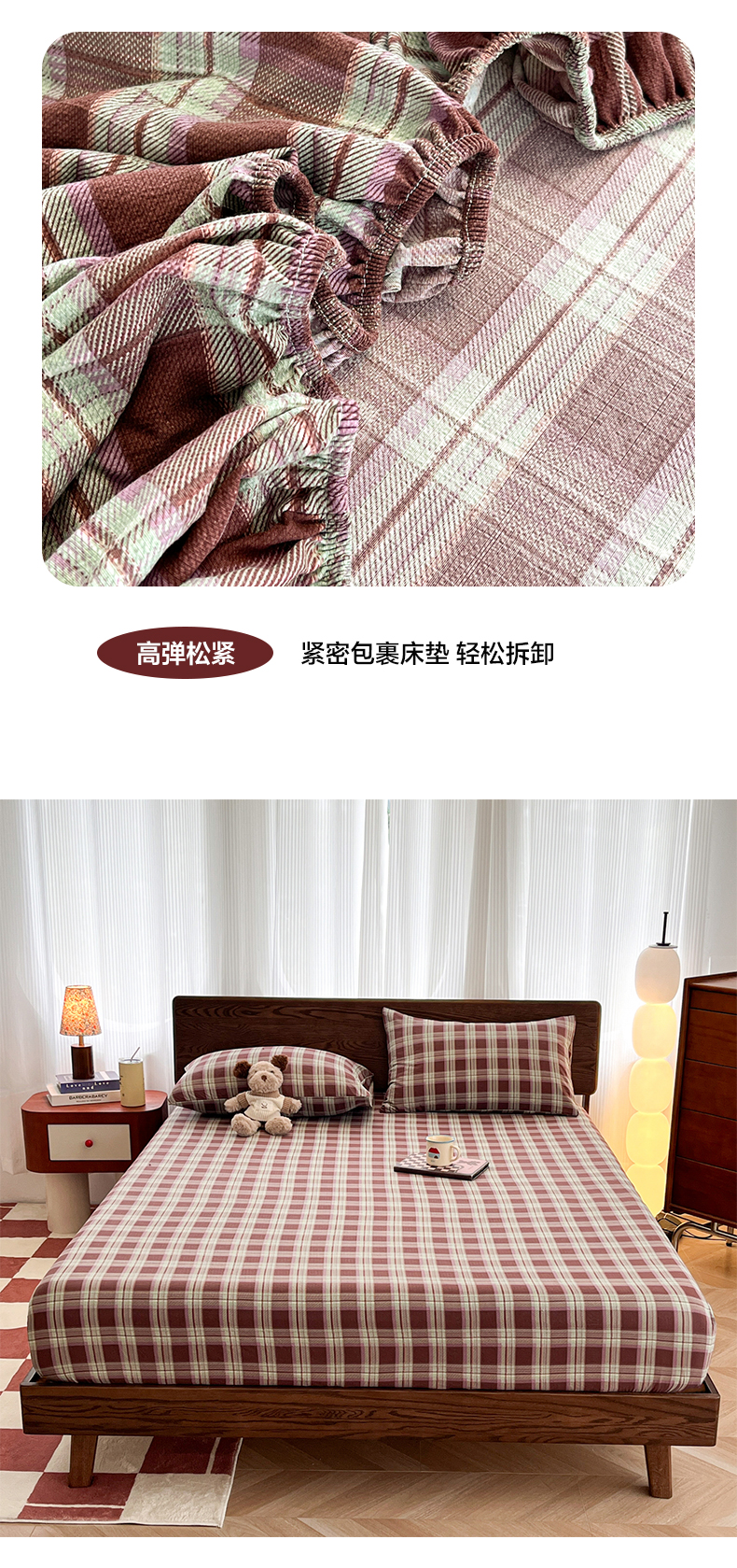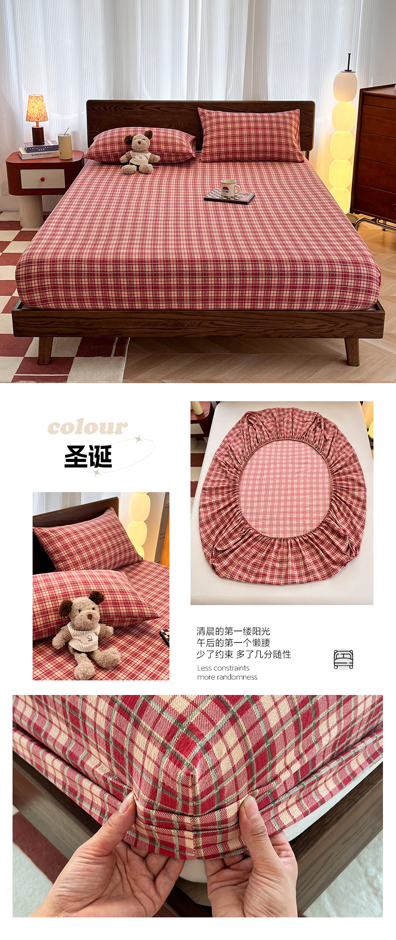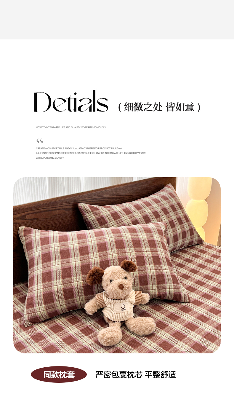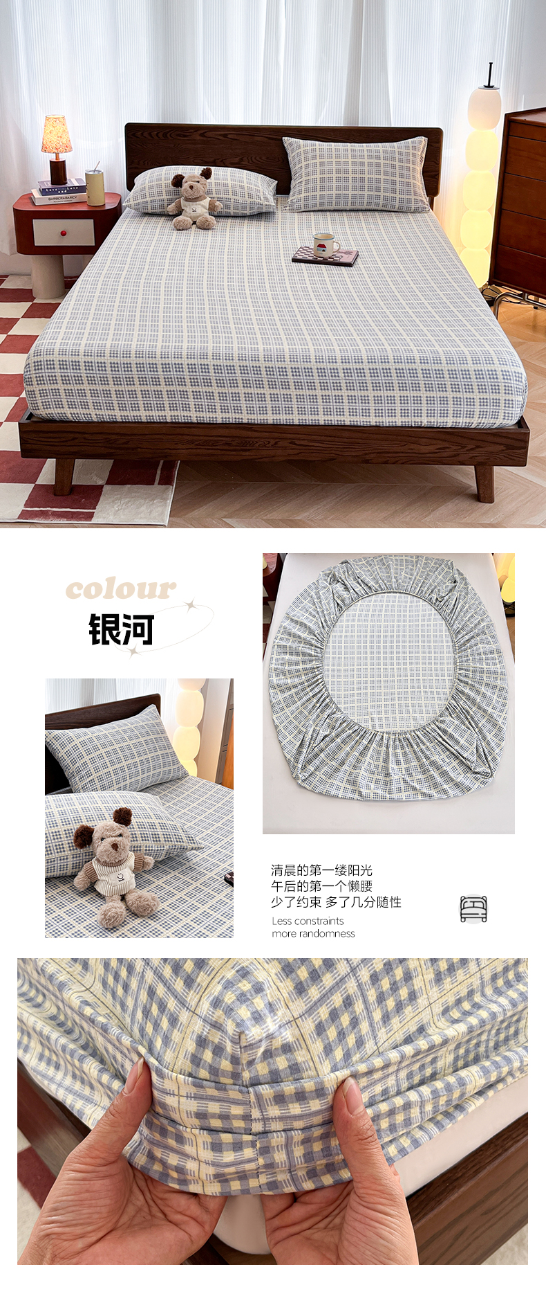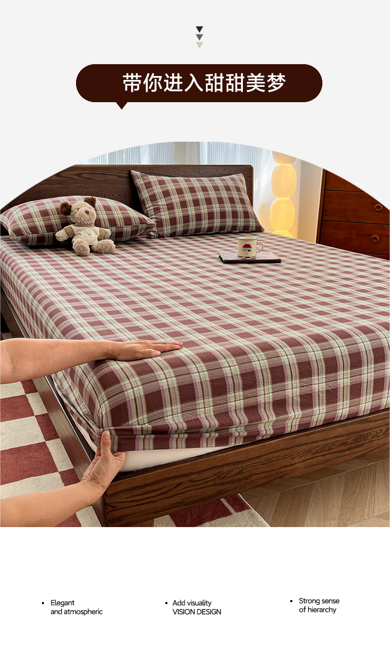 • 91家纺网 家纺一手货源 找家纺 韩巢家纺 2025新款云感双层纱格子复古风单床笠 组合图仅供展示