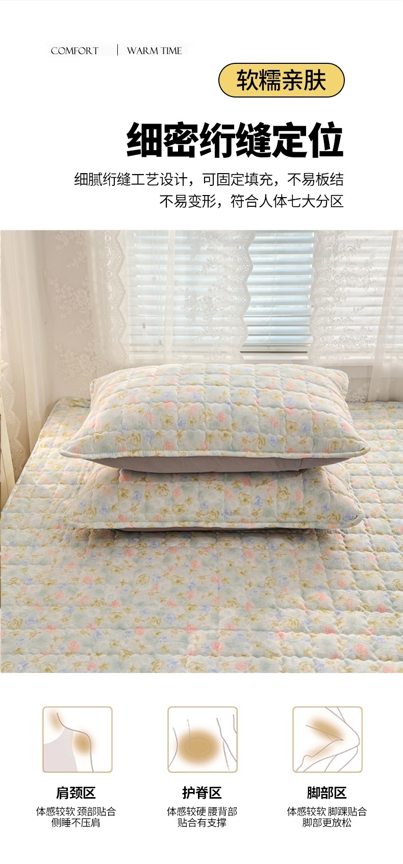 商品名称:梦舒羽 2025新款云感双层纱夹棉枕套宿舍单人枕芯套一对装加厚枕头套 春日初见