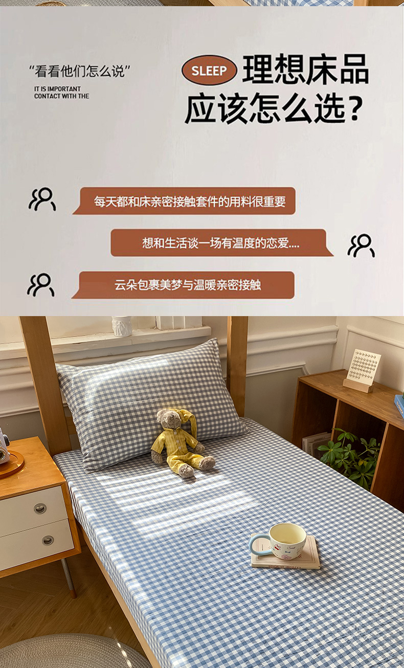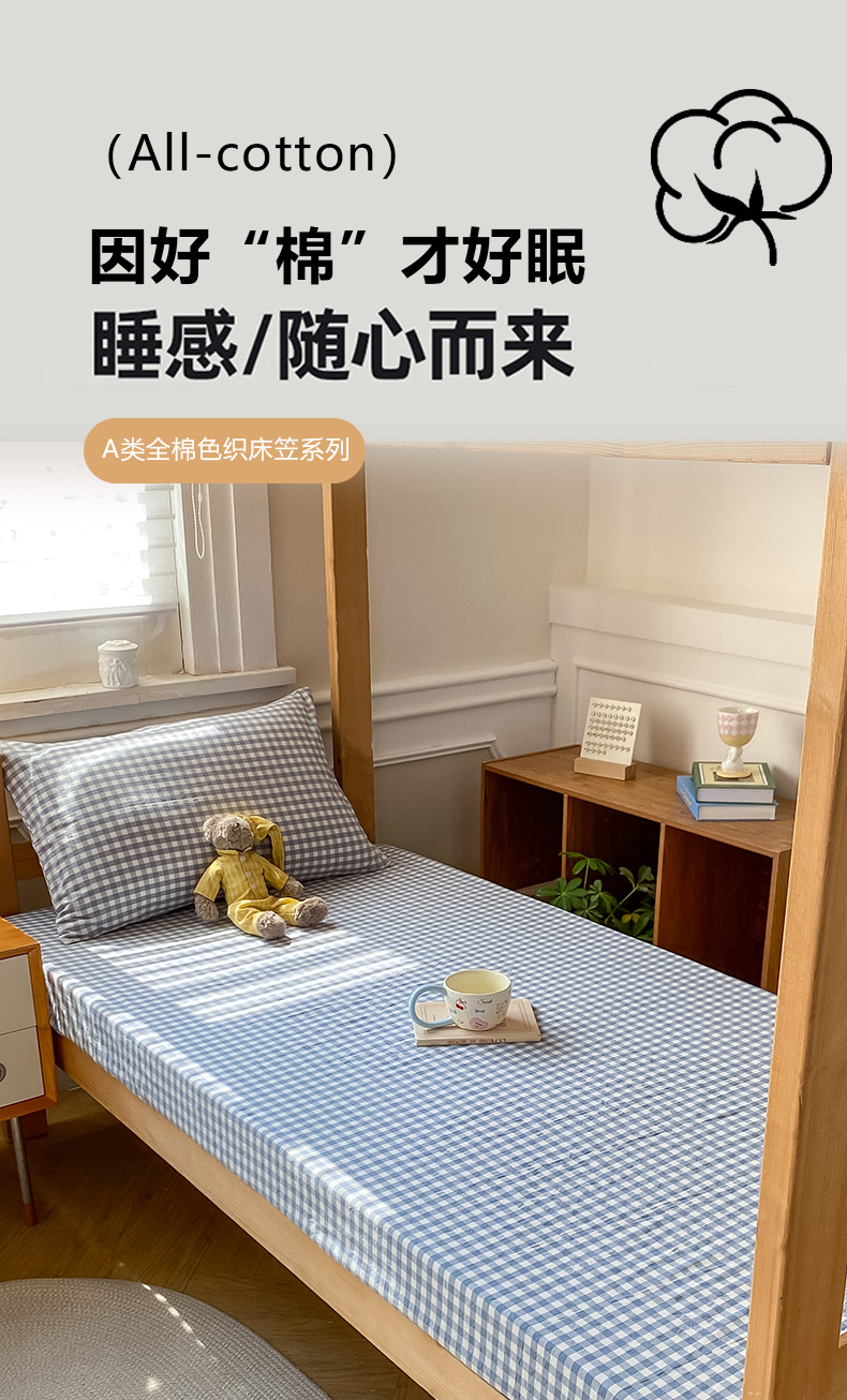 恋人优选 2025新款儿童学生宿舍上下铺全棉纯棉色织床笠单品单床笠床笠单件-无标款系列二 浅蓝小格