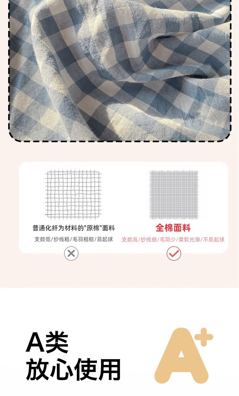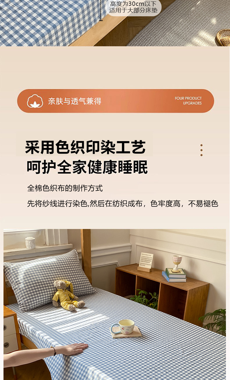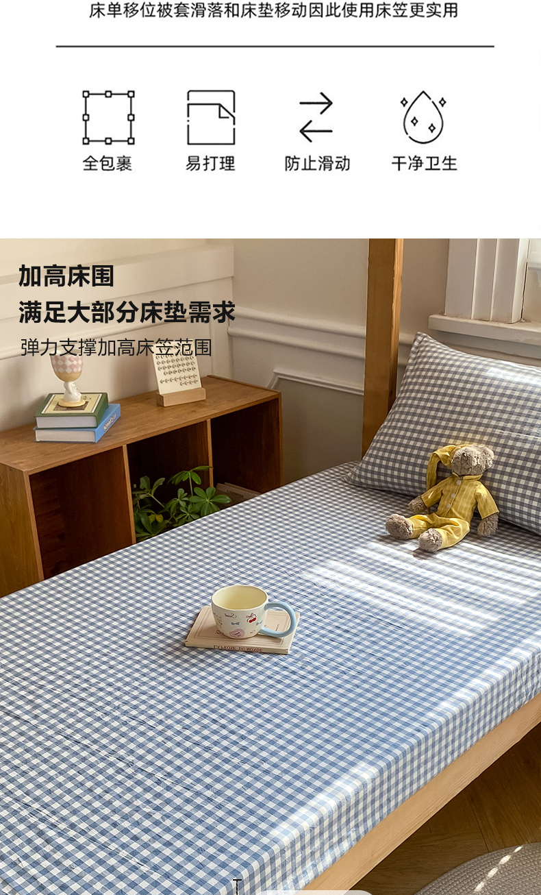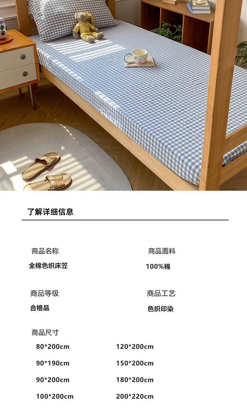 • 91家纺网 家纺一手货源 找家纺 恋人优选 2025新款儿童学生宿舍上下铺全棉纯棉色织床笠单品单床笠床笠单件-无标款系列二 浅蓝小格