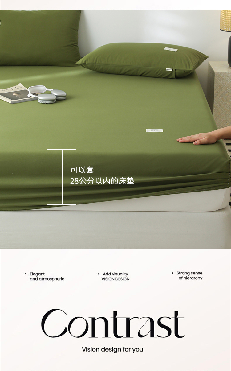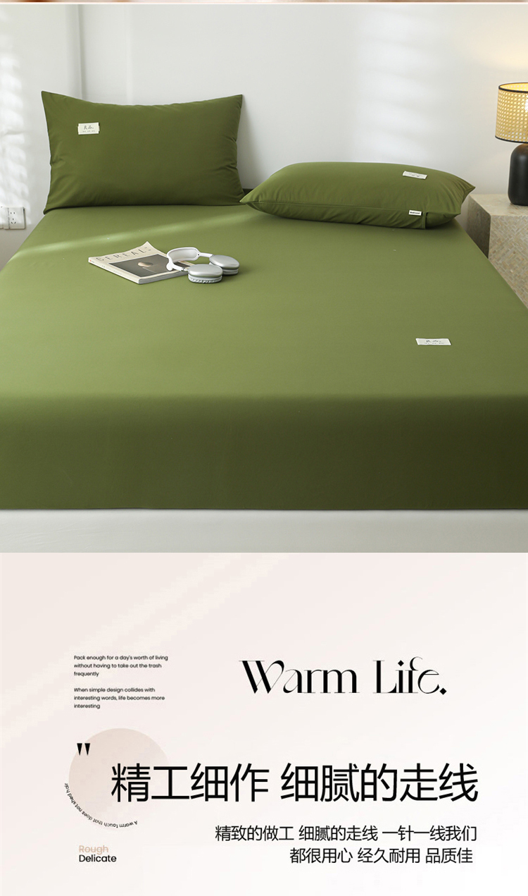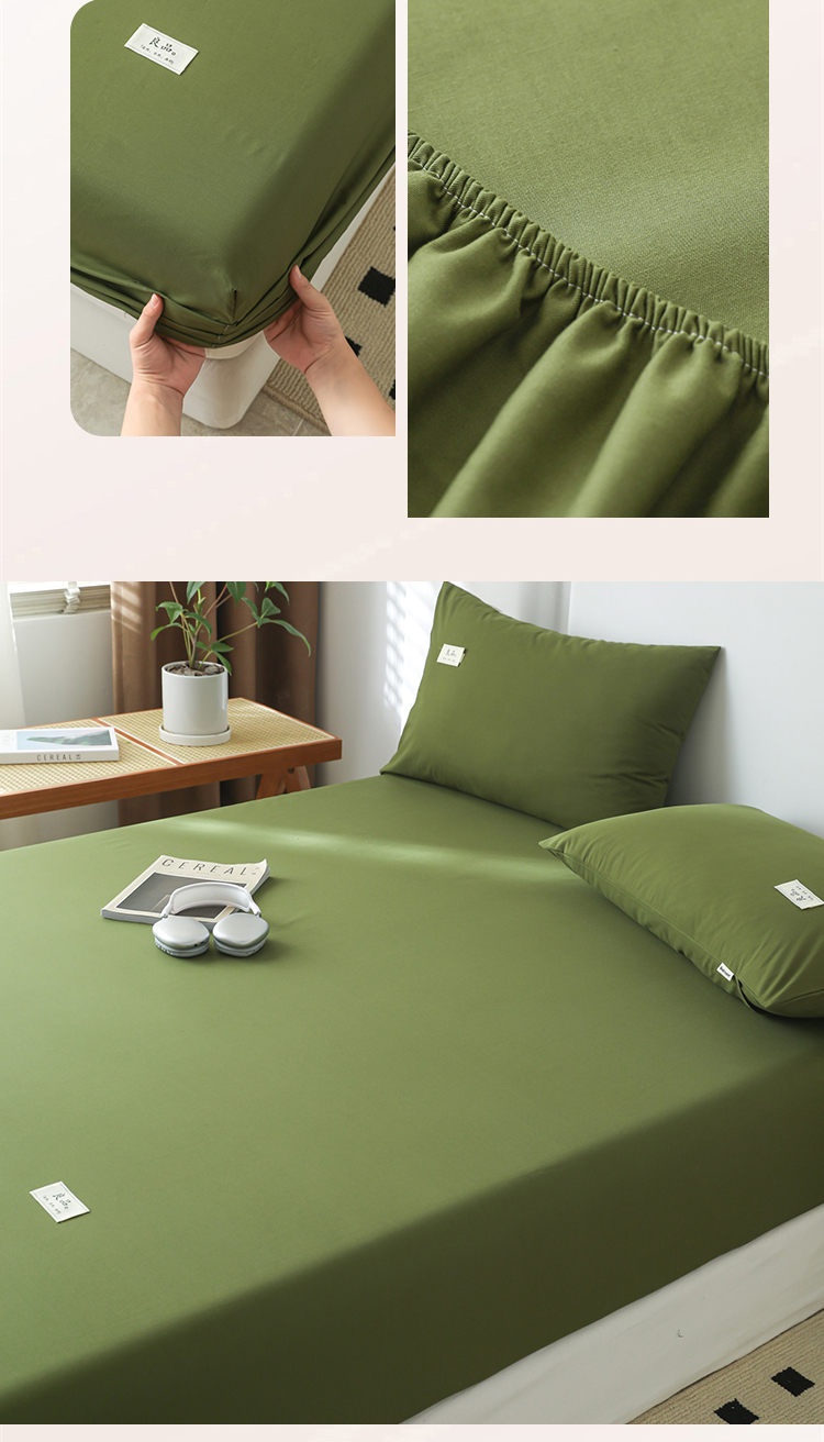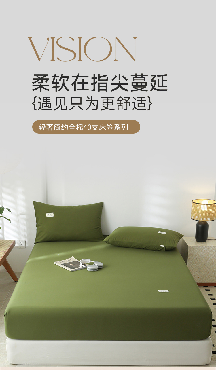 • 91家纺网 家纺一手货源 找家纺 眠博士 2025新款轻奢简约40s全棉纯棉纯色单床笠 床笠单件 床笠-军绿