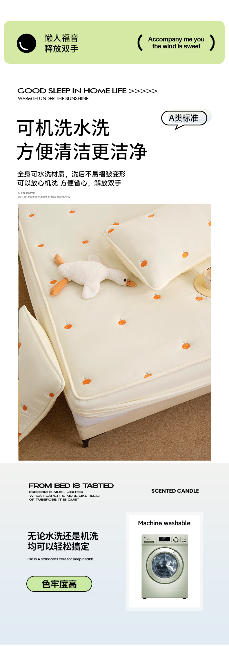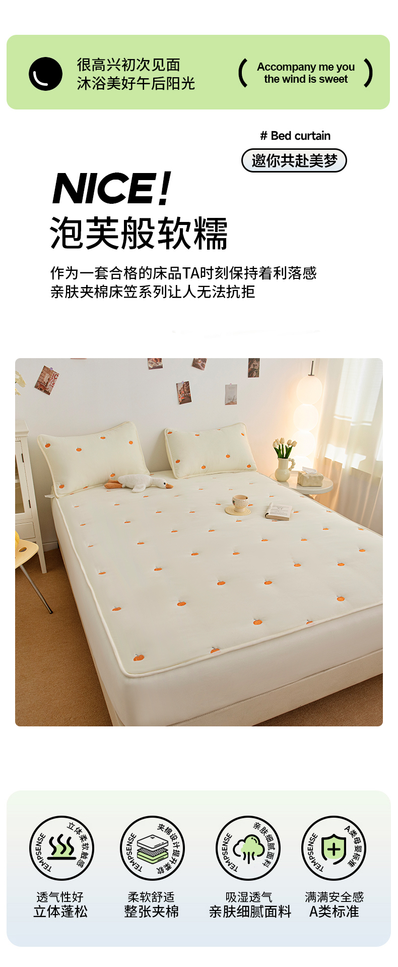 • 91家纺网 家纺一手货源 找家纺 乐居家纺 2025新款A类亲肤夹棉刺绣床笠-南瓜 米白