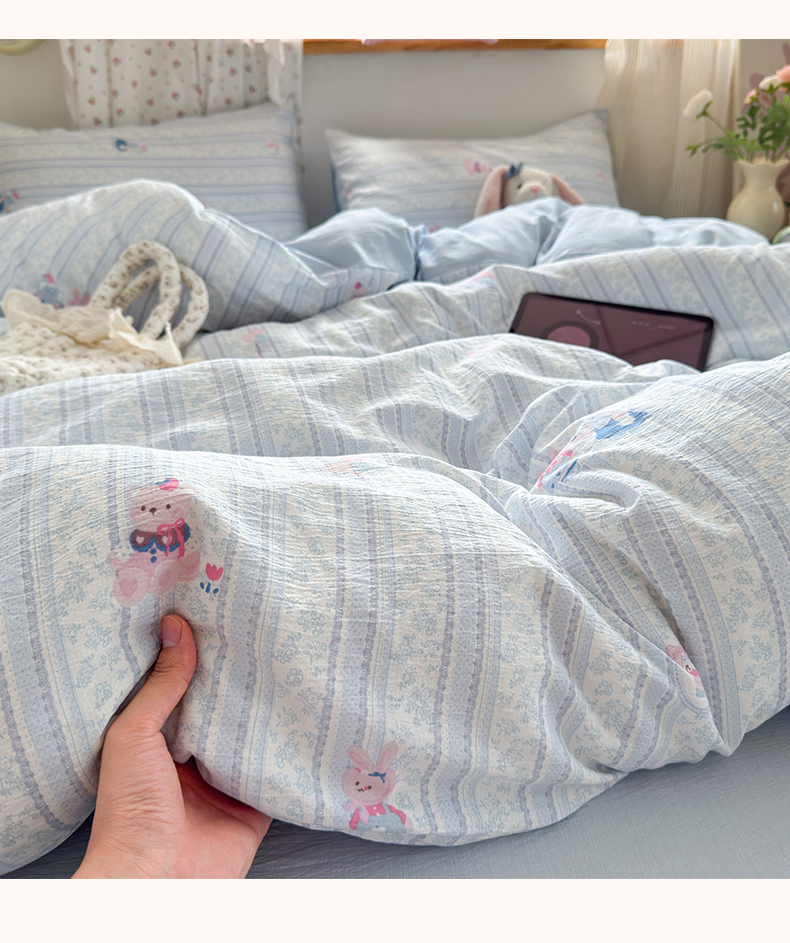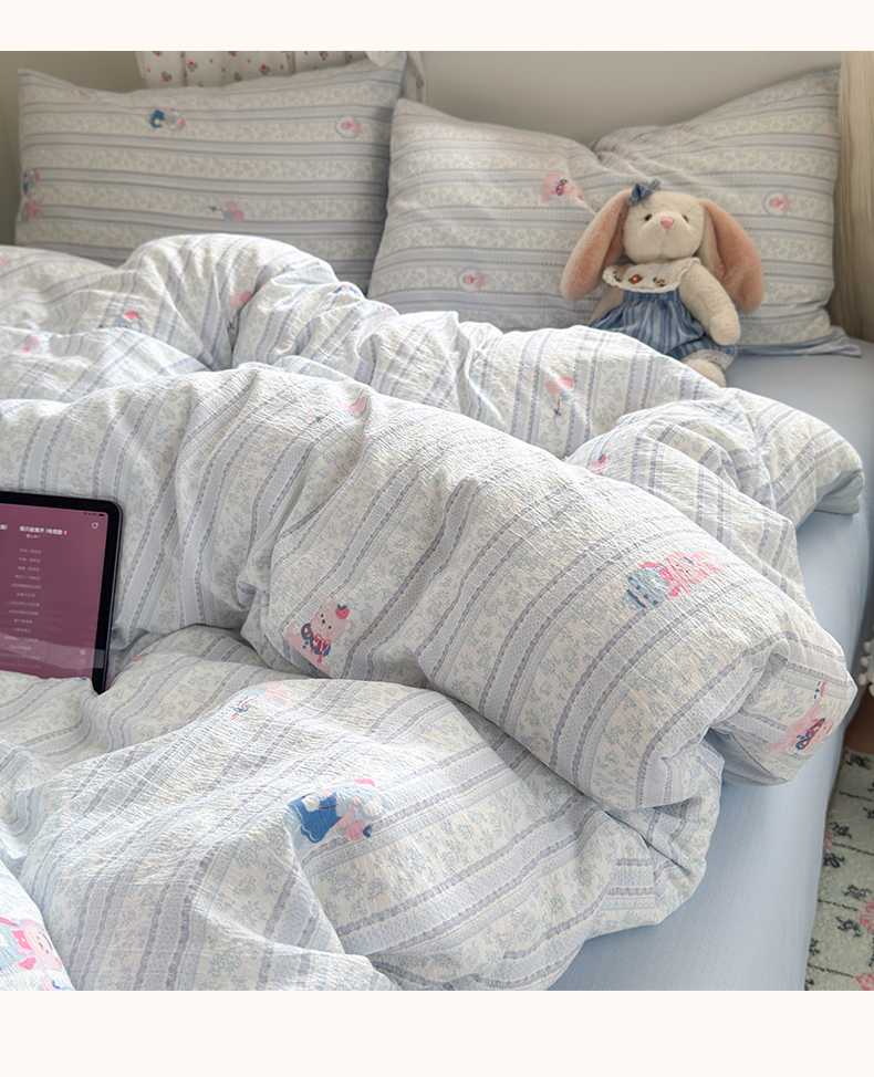 当前位置: 91家纺网 > 商品网购 > 床品套件 > 四件套 > 双层纱四件套 > 罗亿家纺 2025新款云感双层纱印花四件套 童话-小象宝宝