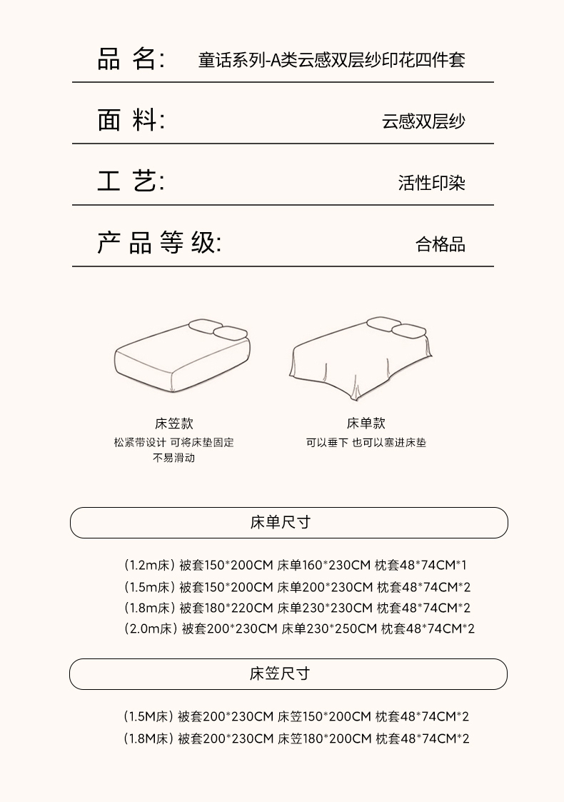 【床笠款】1.5四件套-被套200x230 | ¥58.00 |