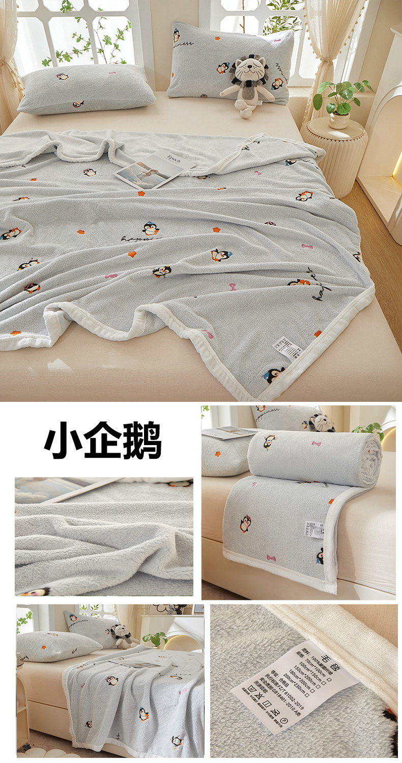 商品名称:楼兰公主 2025新款云朵绒卡通刺绣毛毯盖毯毯子 小企鹅