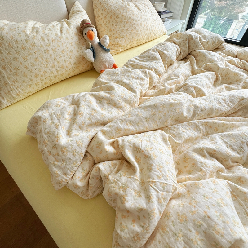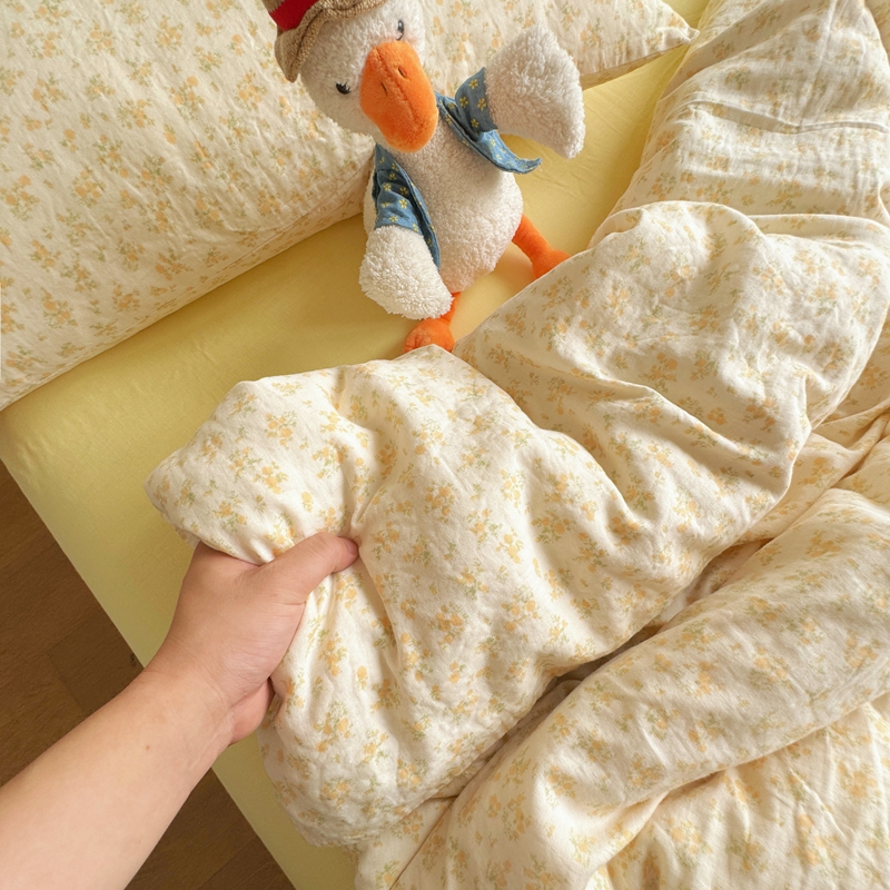 8+8 2025新款全棉A类母婴级抗菌有氧全棉双层纱亲肤全棉小清新印花三件套四件套 简约款-晴天