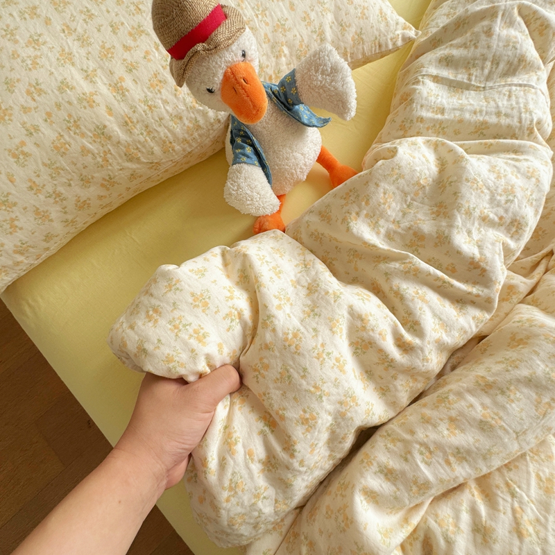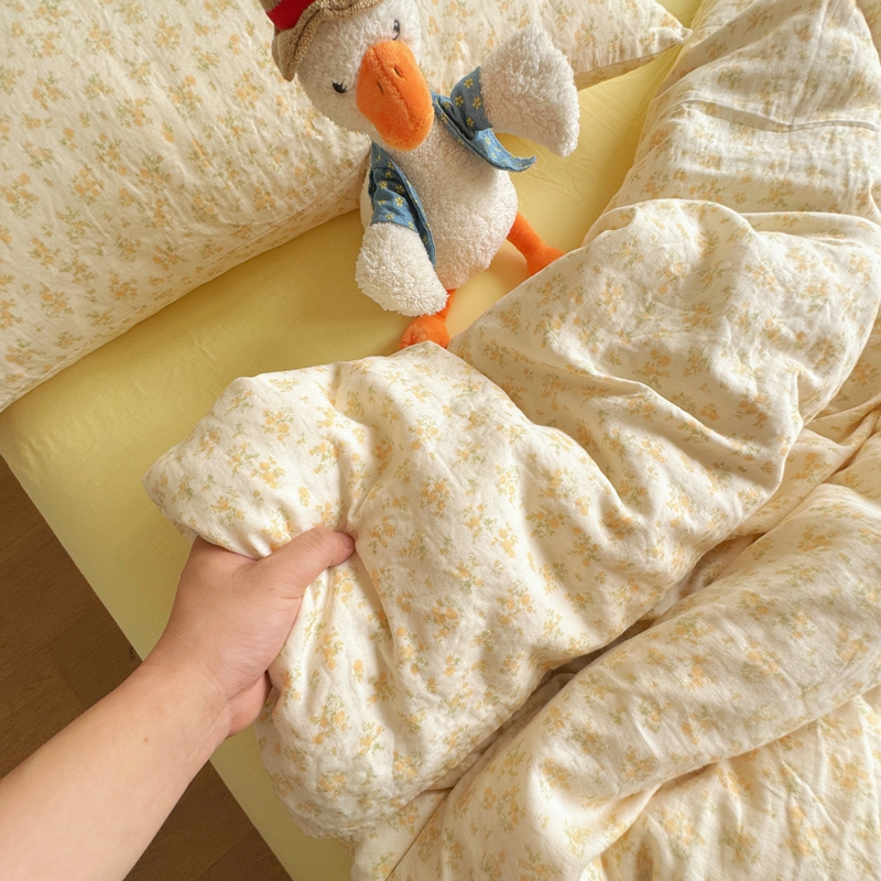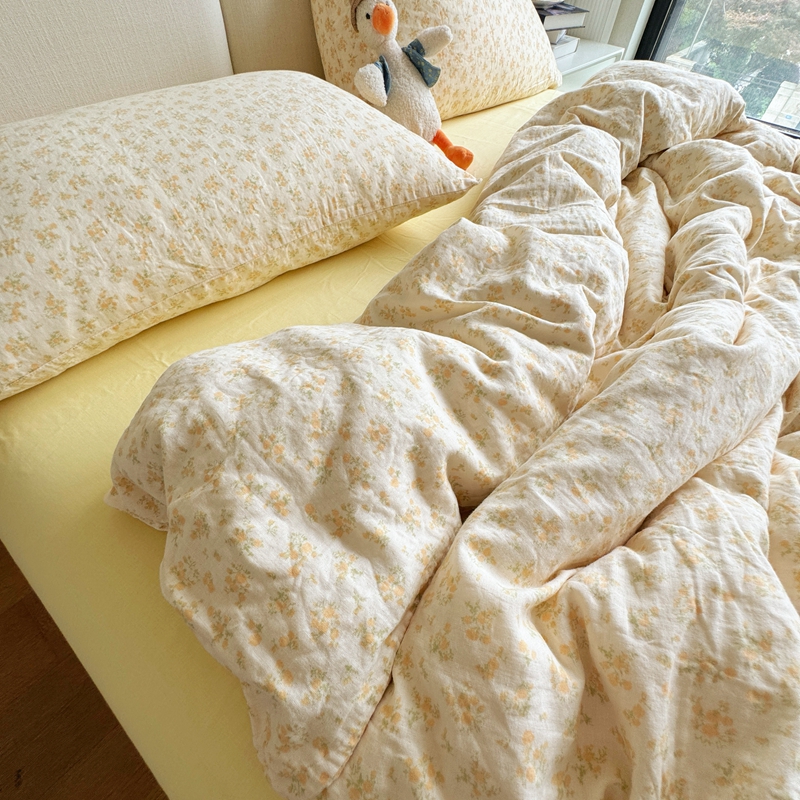 商品名称:8+8 2025新款全棉A类母婴级抗菌有氧全棉双层纱亲肤全棉小清新印花三件套四件套 简约款-晴天
