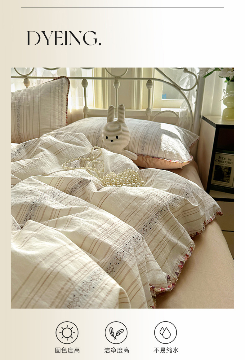 (总)田野 2025新款全棉水洗棉提花四件套,花田,花颜,帽子狗,蘑菇,飘带,泰迪狗,小树林-咖,小象,小雨点,樱桃-绿