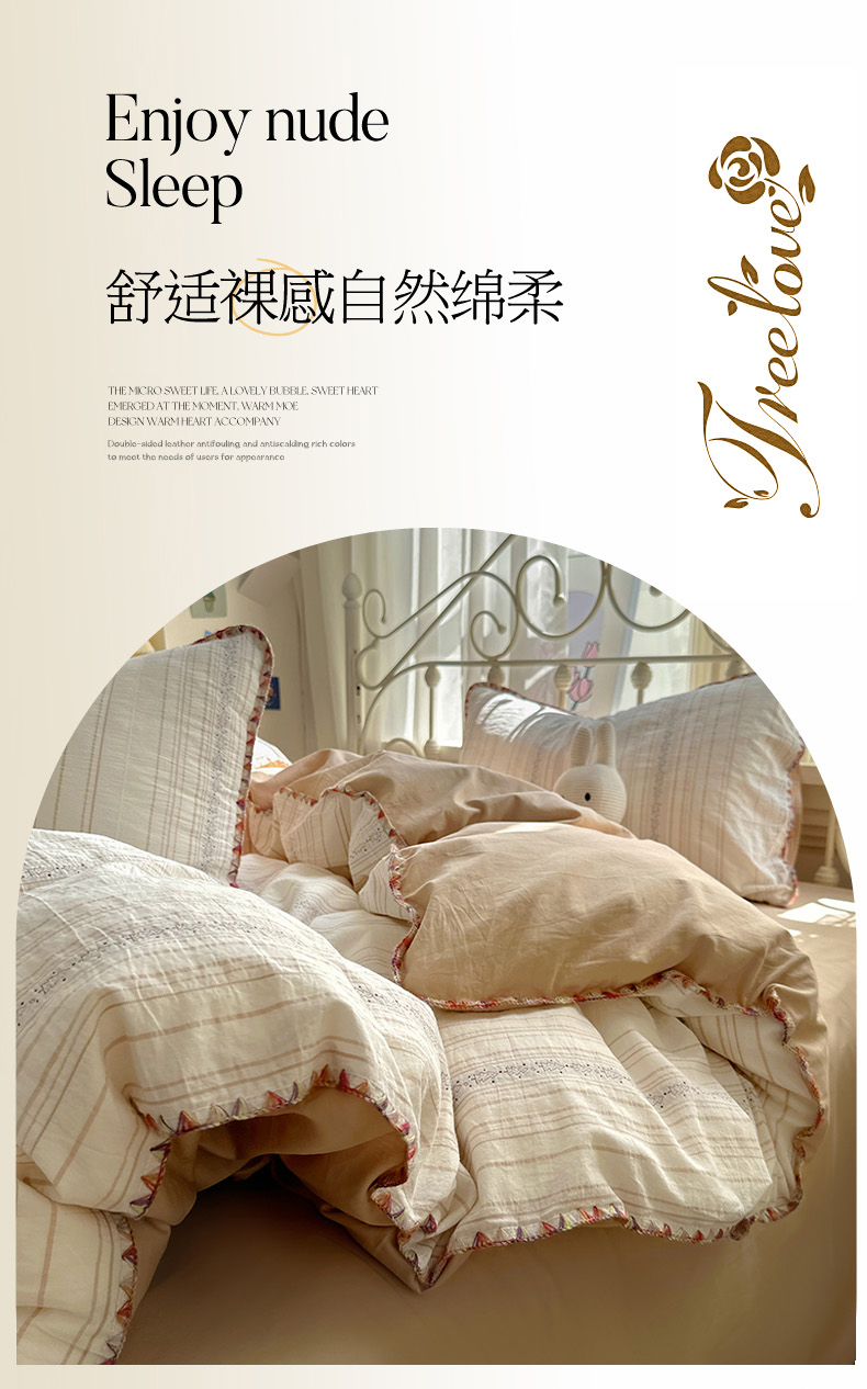 (总)田野 2023新款全棉A类贝壳边双层纱四件套,饼干熊,波波兔,呆萌熊,萌宠乐园,萌兔森林,甜心小兔,薇拉,小蘑菇,伊甜