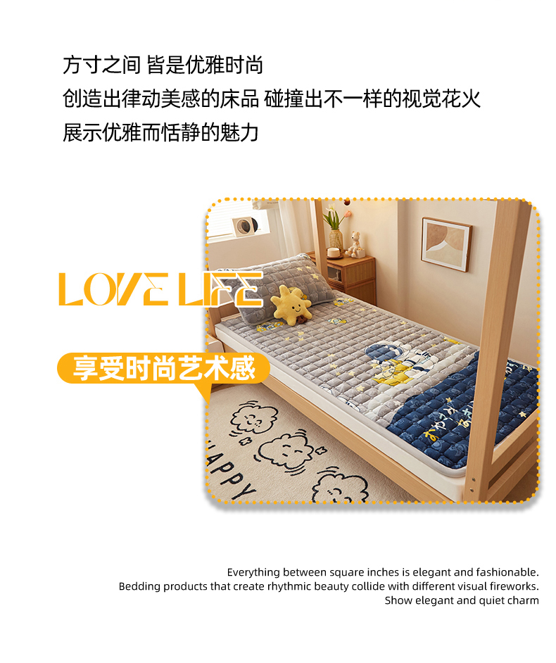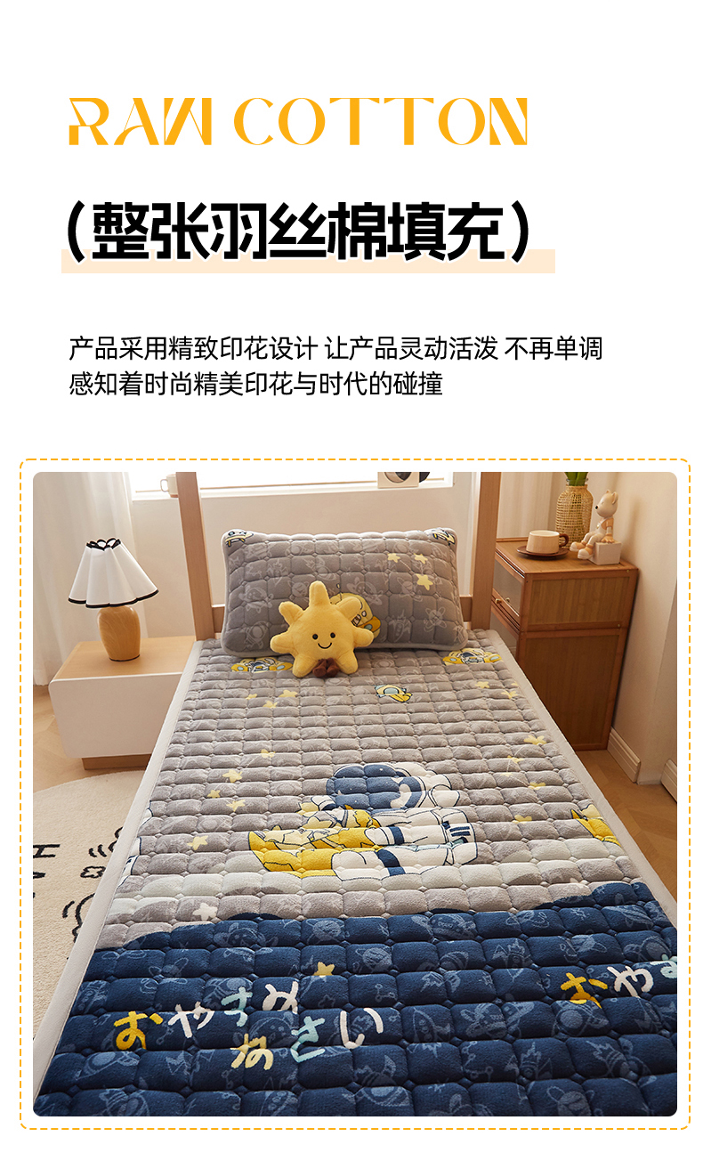 • 91家纺网 家纺一手货源 找家纺 奇丝雅 2025新款A类牛奶绒床褥床垫家用学生宿舍上下铺寝室软垫床护垫夹棉褥子-学生床垫 宇航员