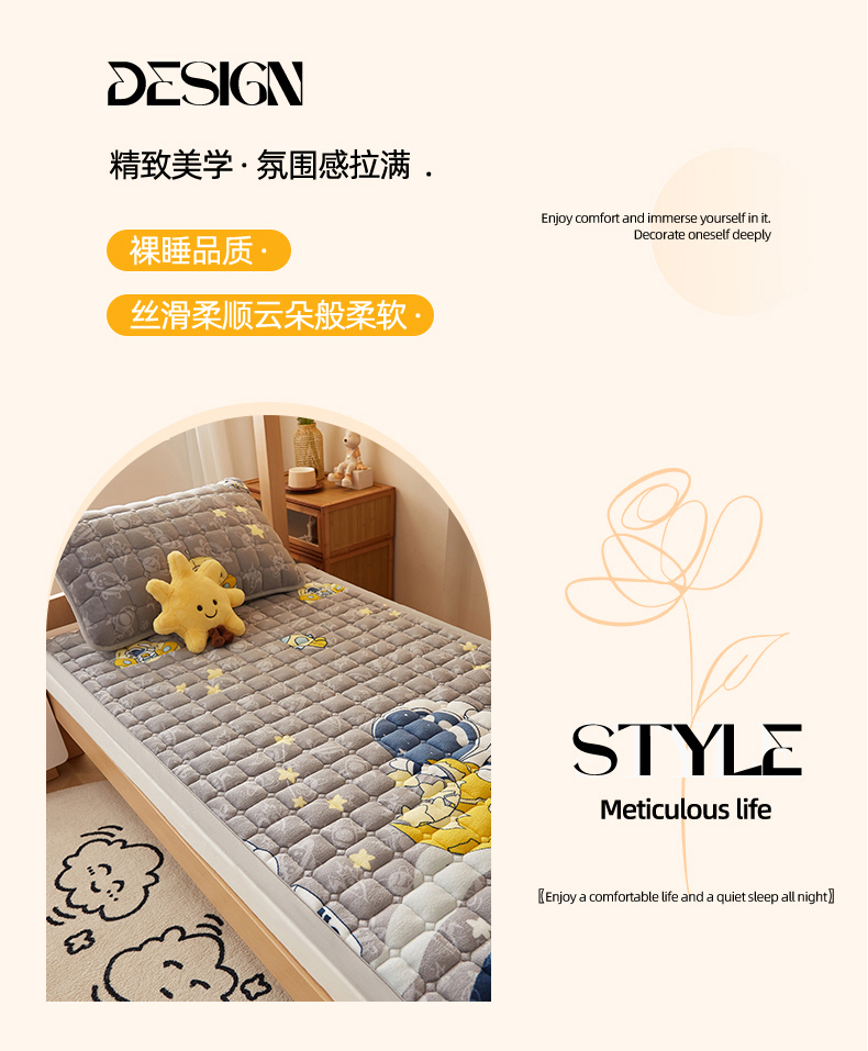 • 91家纺网 家纺一手货源 找家纺 (总)奇丝雅 2025新款A类牛奶绒泡泡绒床褥床垫床盖兔毛绒家用学生宿舍上下铺寝室褥子软垫床护垫夹棉(大床)场景二,星星猫咪,月亮湾,趴趴狗,繁星,爱心咖,樱桃猫咪,幻影灰,暖绒蓝,清新绿,柔和蓝