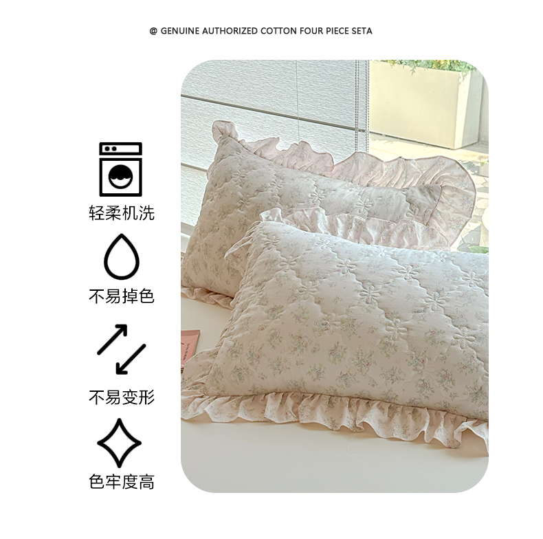 忘忧草 2025新款亲肤水洗棉花边单枕套 枕套单件 畅想花海