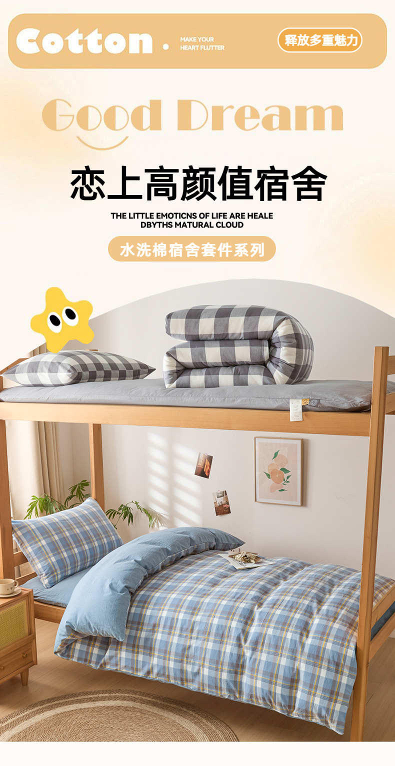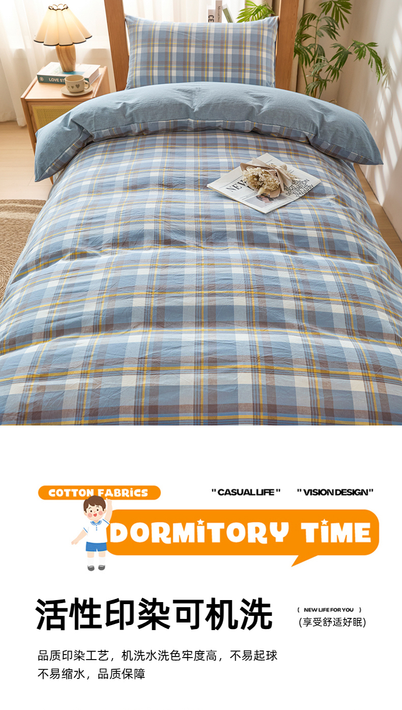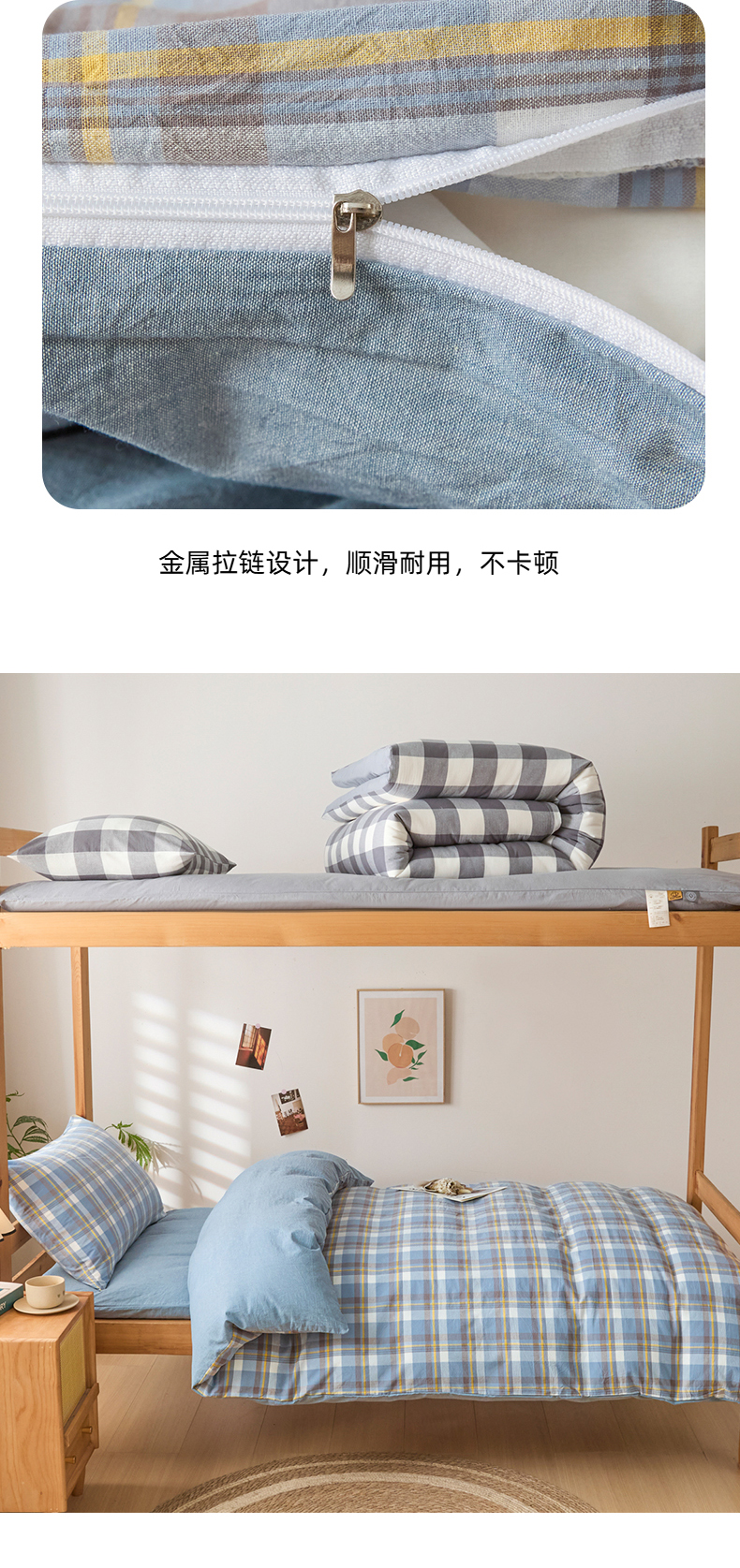 (总)爱屋及屋 2025新款水洗棉学生季大礼包学生宿舍六件套棉花被+棉花垫子+枕头+三件套一站式全套,海蓝大格,格韵蓝,光年灰,灰中格,简析粉,简析蓝,蓝咖大格,蓝小格,蓝中格,清新格,韵绿格,左岸蓝