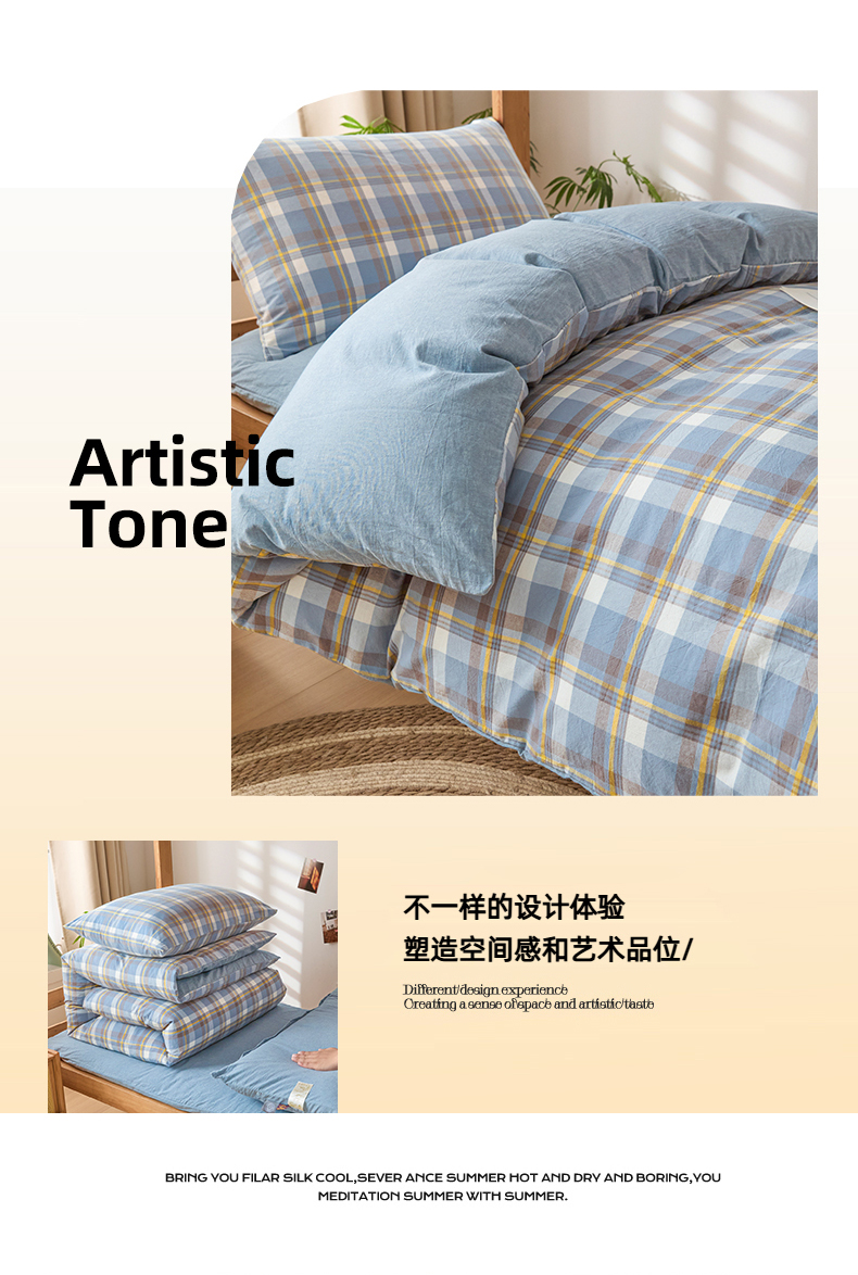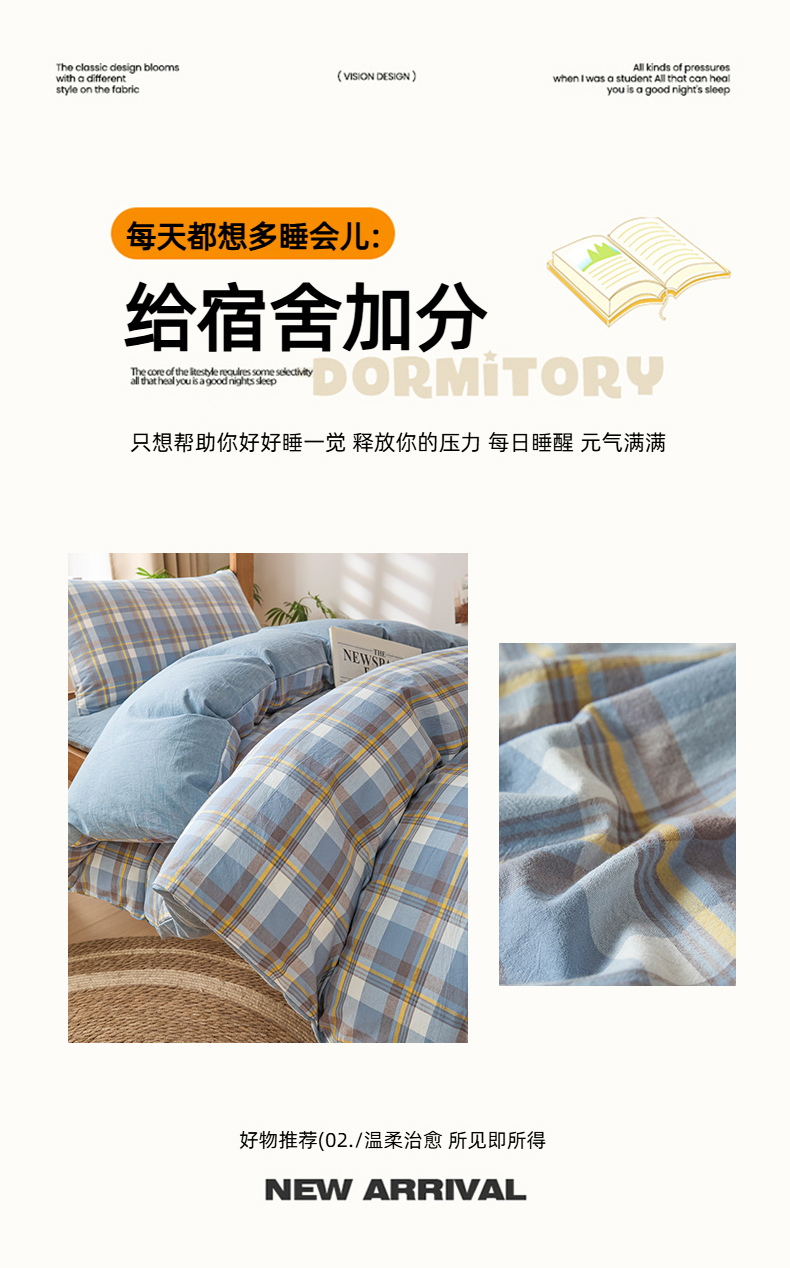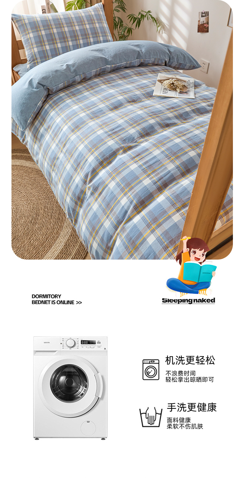 (总)爱屋及屋 2025新款水洗棉学生季大礼包学生宿舍六件套棉花被+棉花垫子+枕头+三件套一站式全套,海蓝大格,格韵蓝,光年灰,灰中格,简析粉,简析蓝,蓝咖大格,蓝小格,蓝中格,清新格,韵绿格,左岸蓝