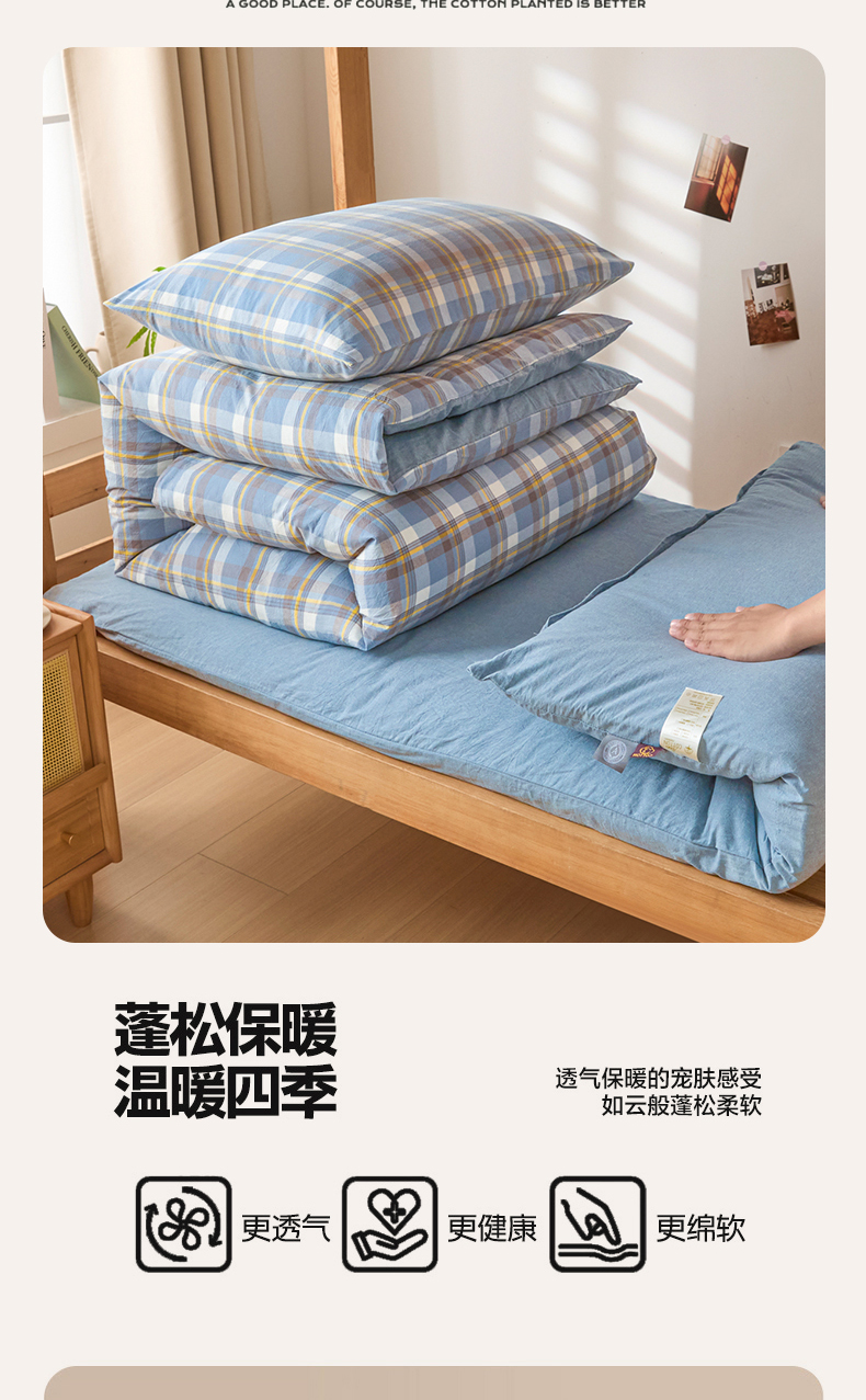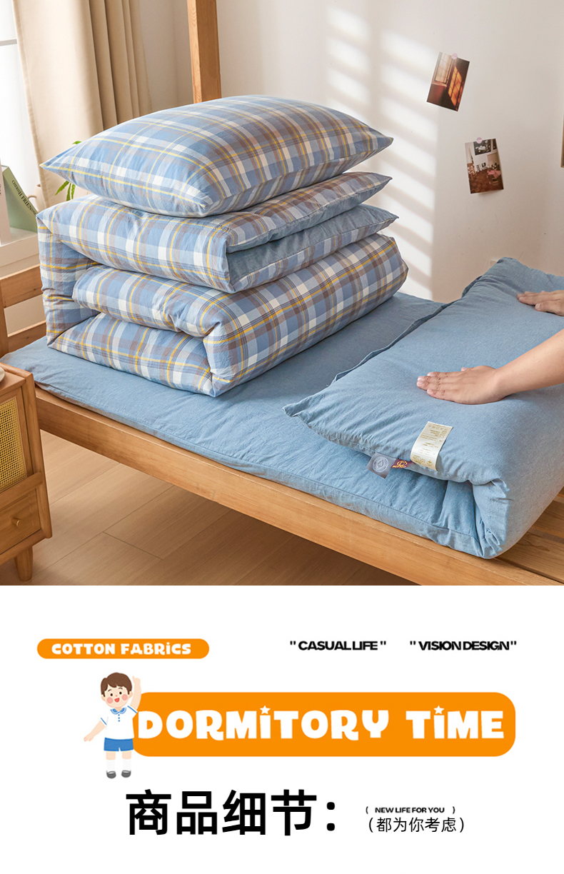 (总)爱屋及屋 2025款无印风学生棉花床垫,格韵蓝,海蓝大格,灰中格,简析蓝,蓝咖大格,蓝小格,蓝中格,韵绿格,左岸蓝