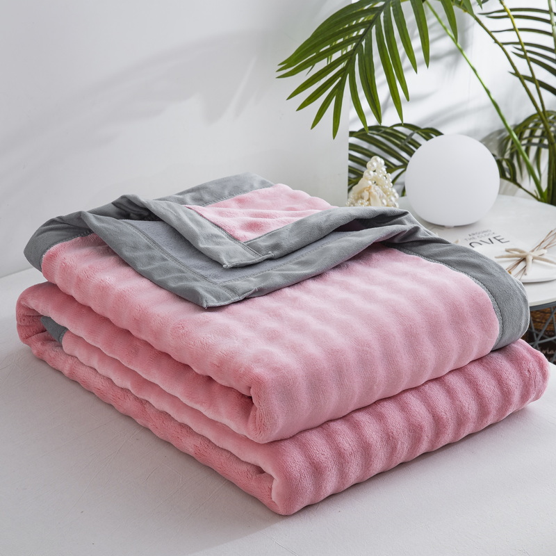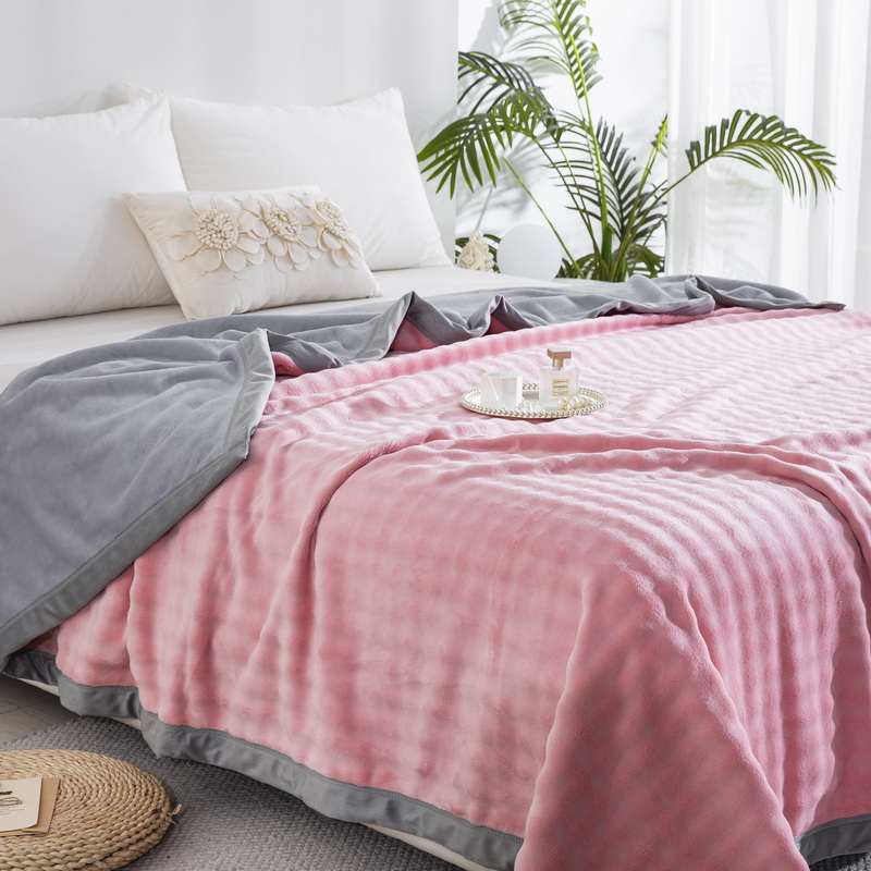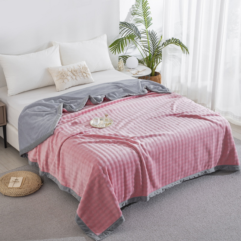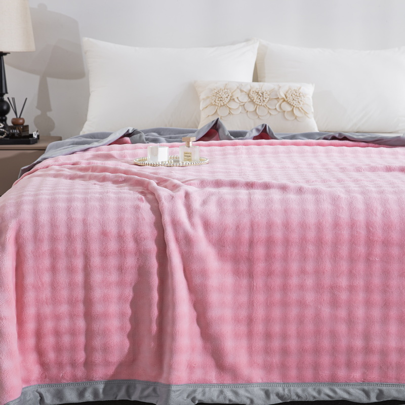卉晨家纺 2025新款牛奶绒纯色小泡泡复合毯 浅梅粉