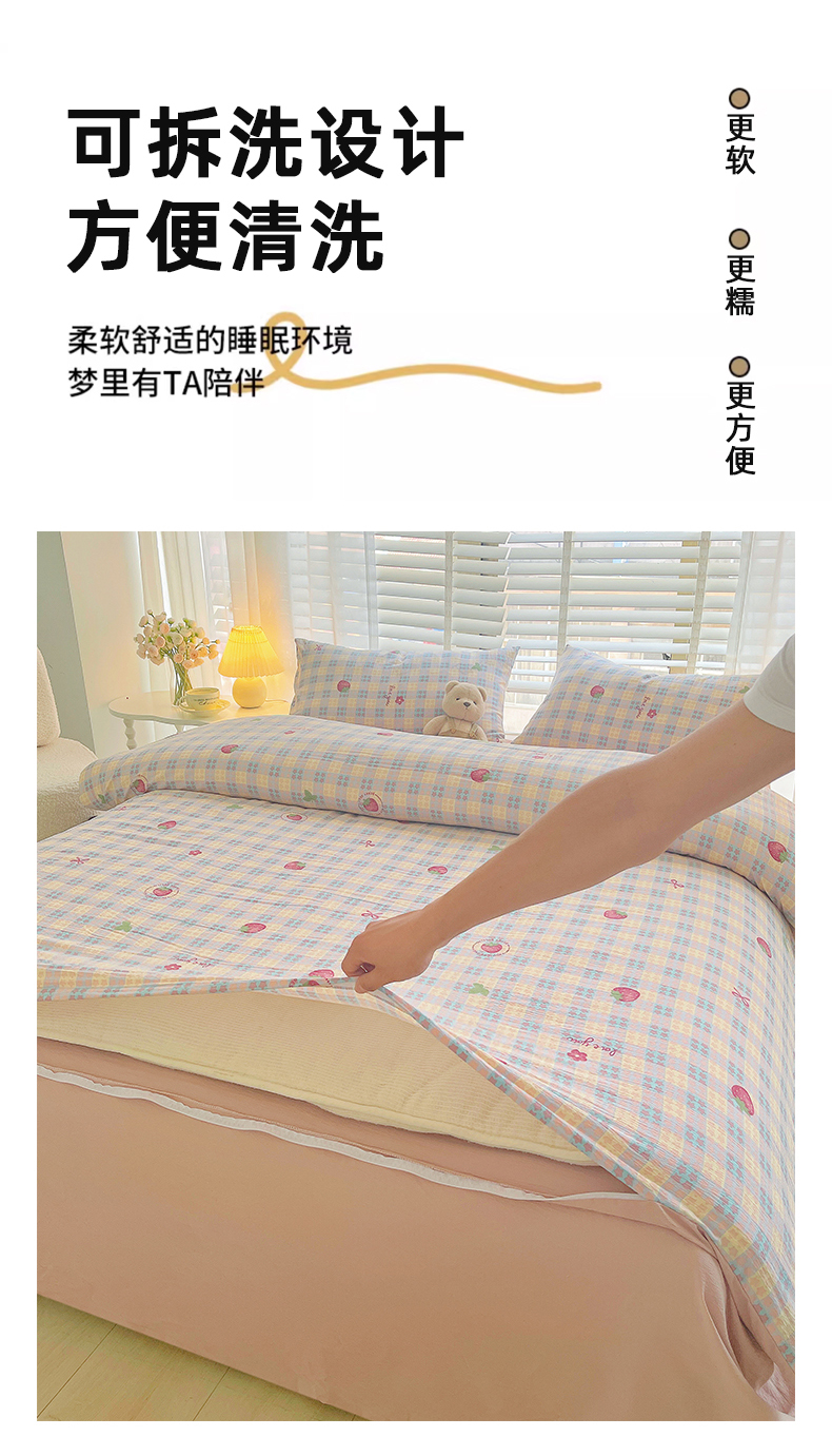 (总)爱屋及屋 2025款无印风学生棉花床垫,格韵蓝,海蓝大格,灰中格,简析蓝,蓝咖大格,蓝小格,蓝中格,韵绿格,左岸蓝