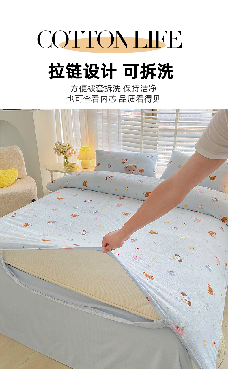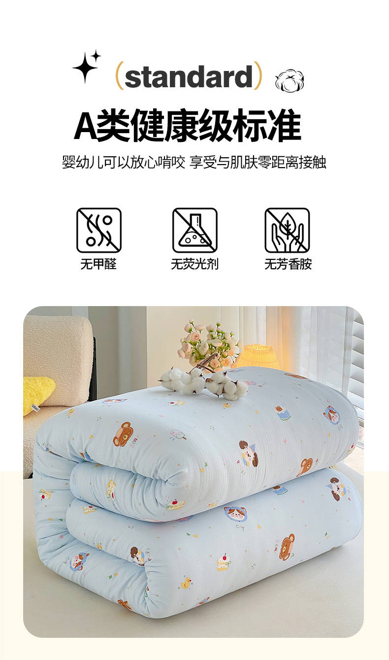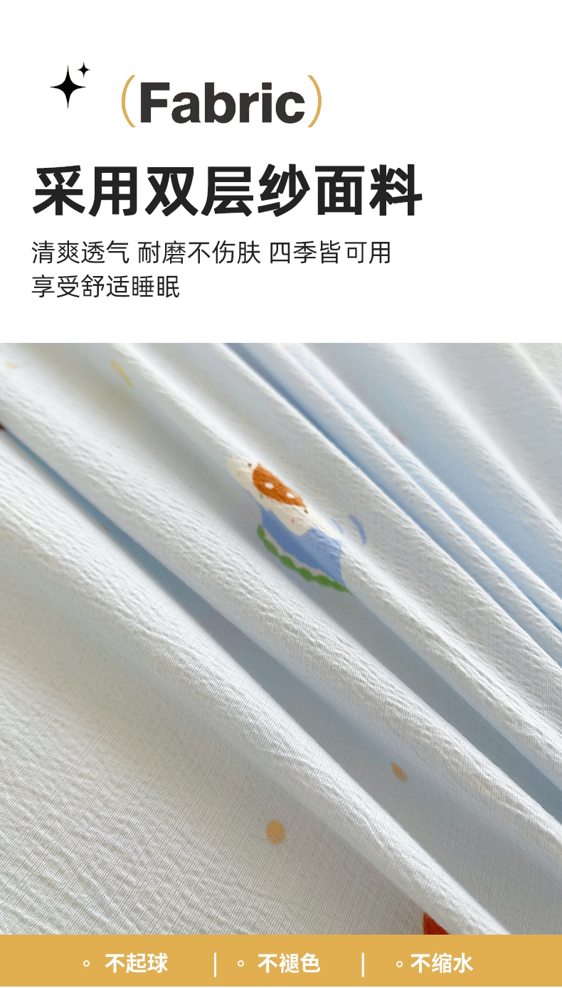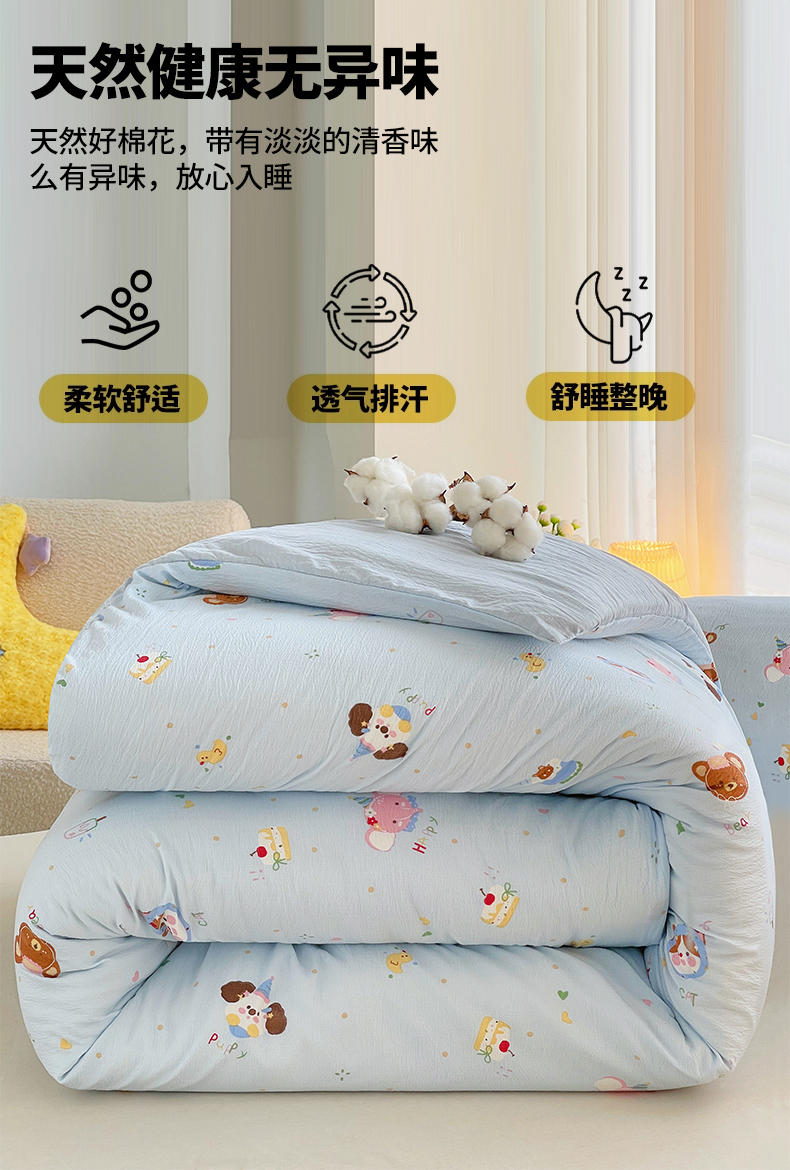 2025新款双层纱可拆洗棉花被 浅蓝童话