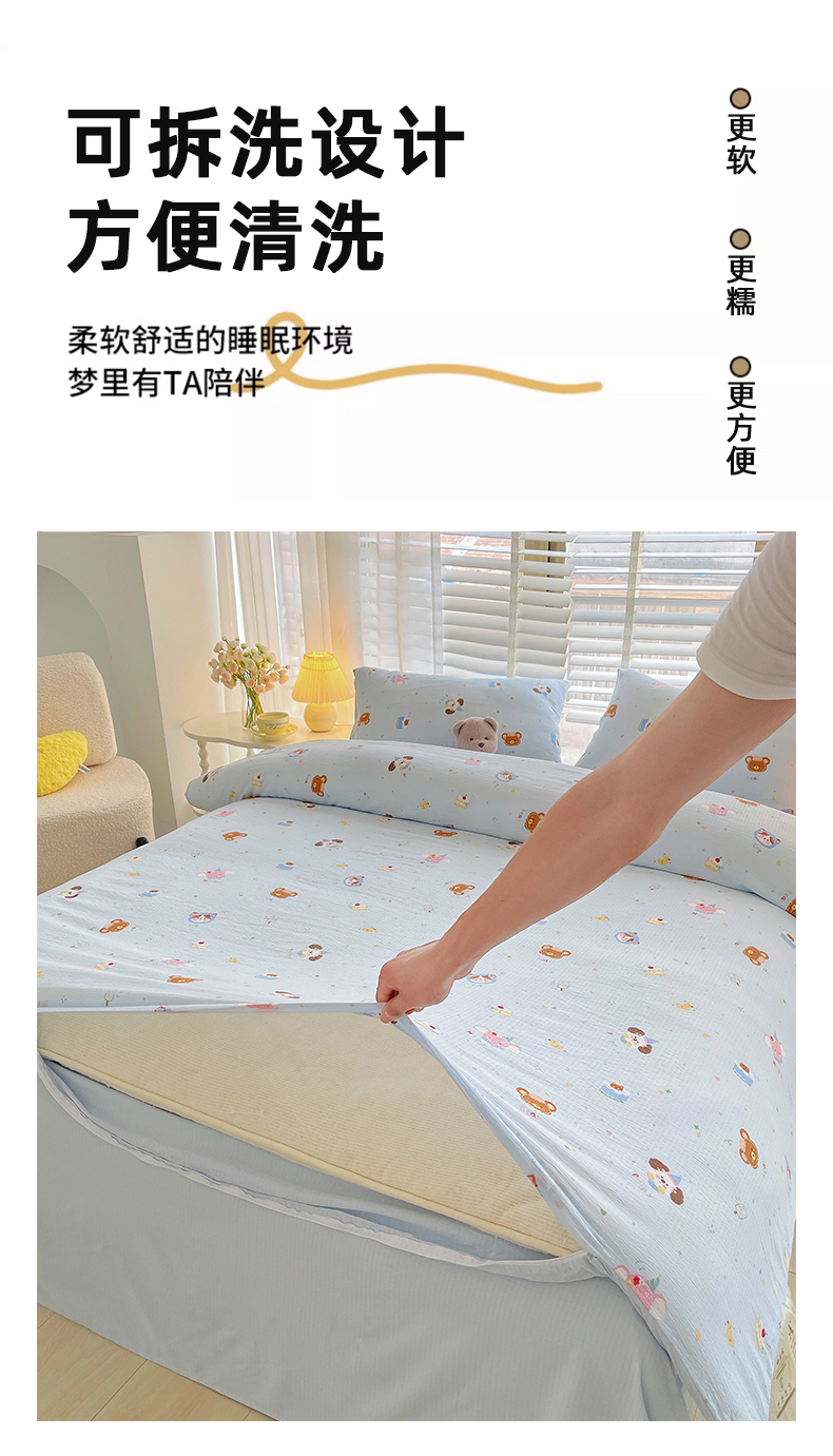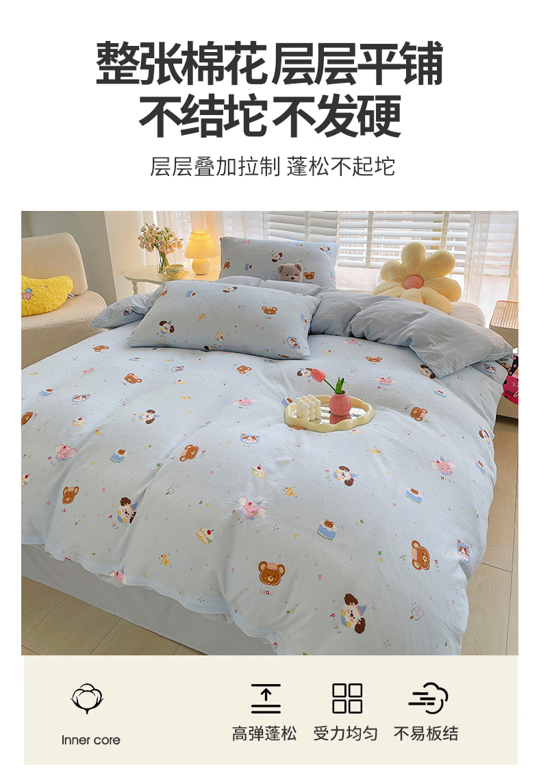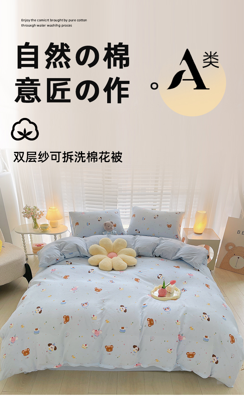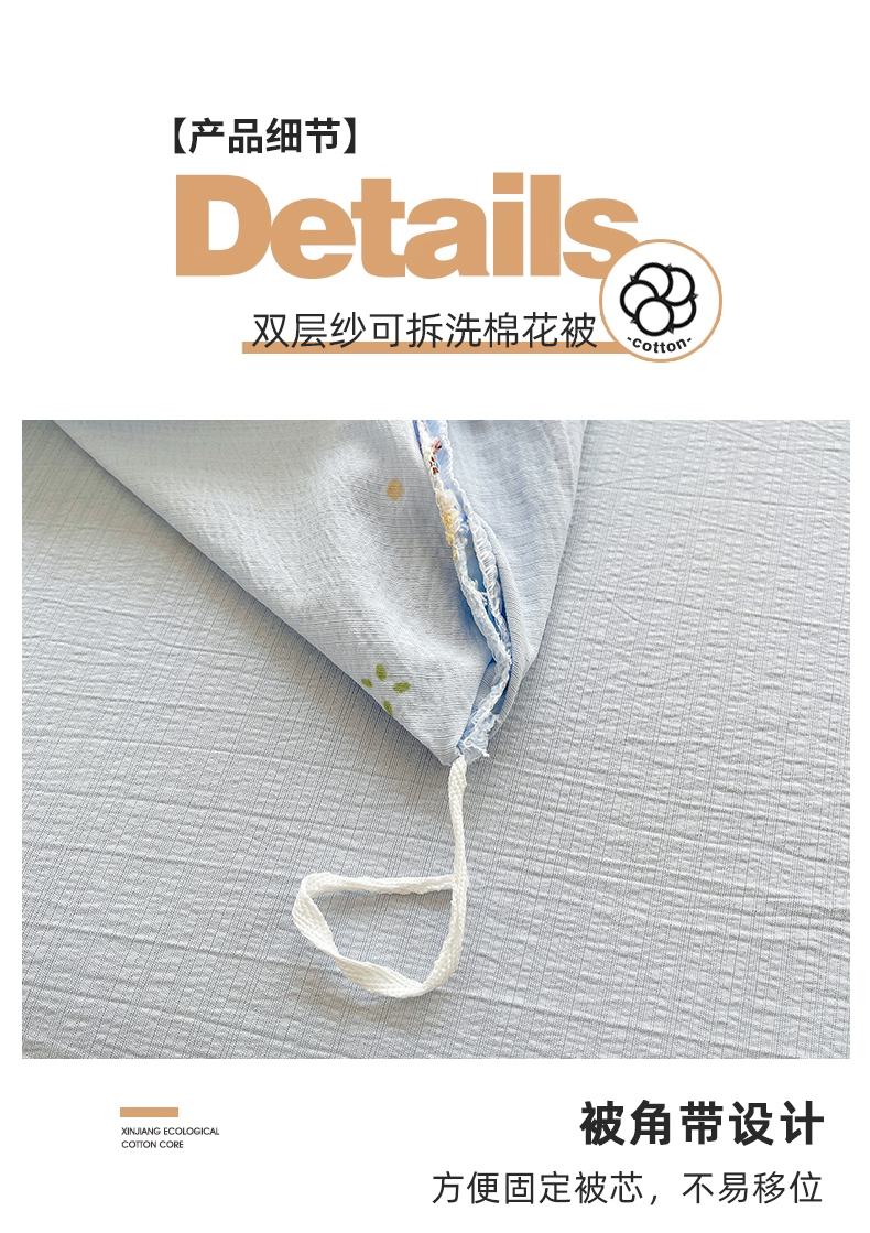 2025新款双层纱可拆洗棉花被 浅蓝童话