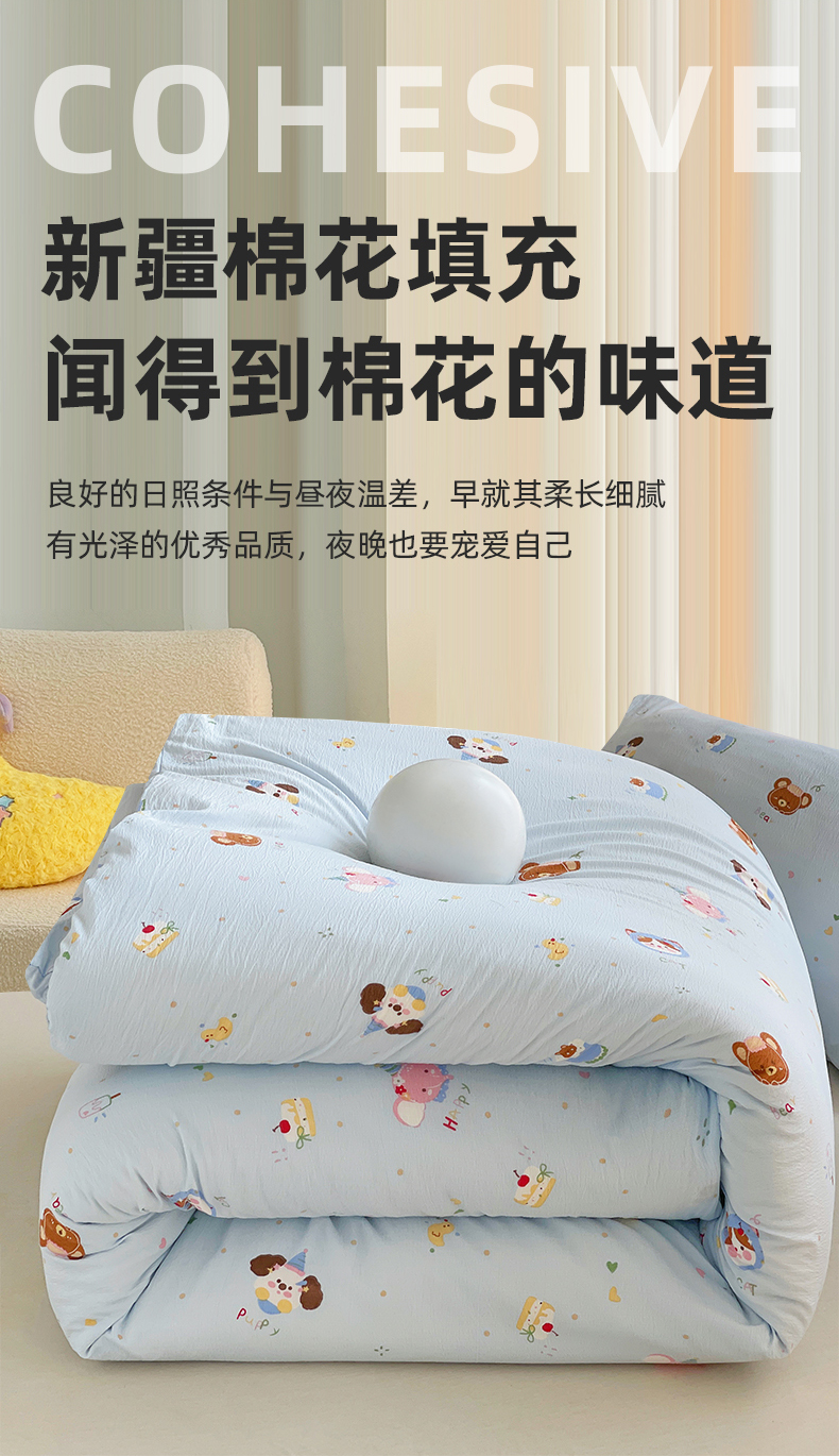 • 91家纺网 家纺一手货源 找家纺 2025新款双层纱可拆洗棉花被 浅蓝童话