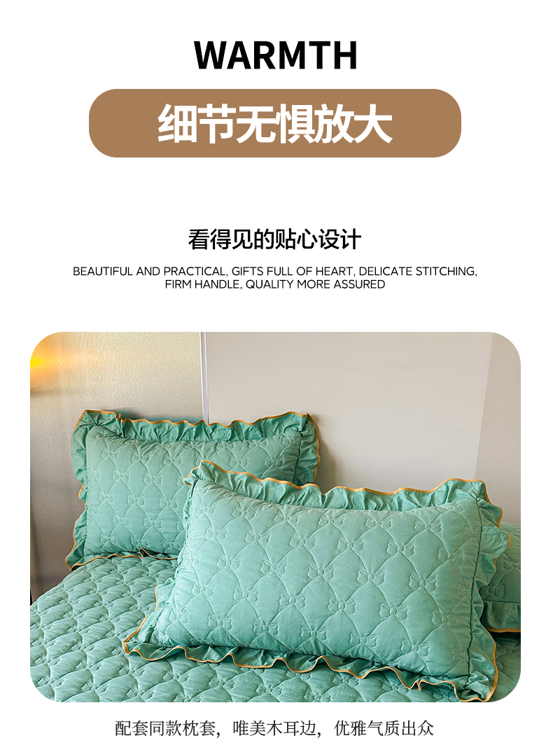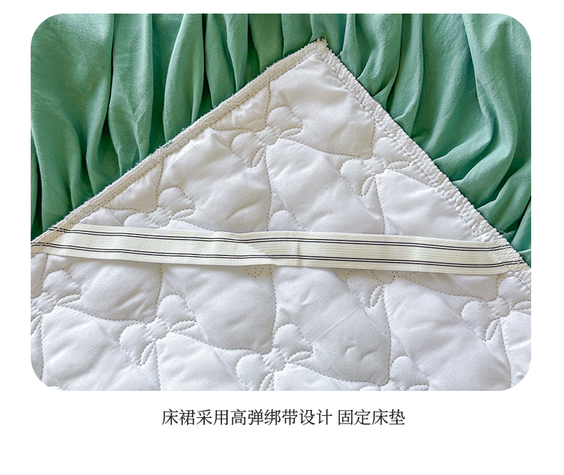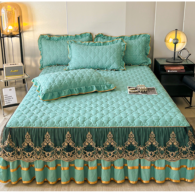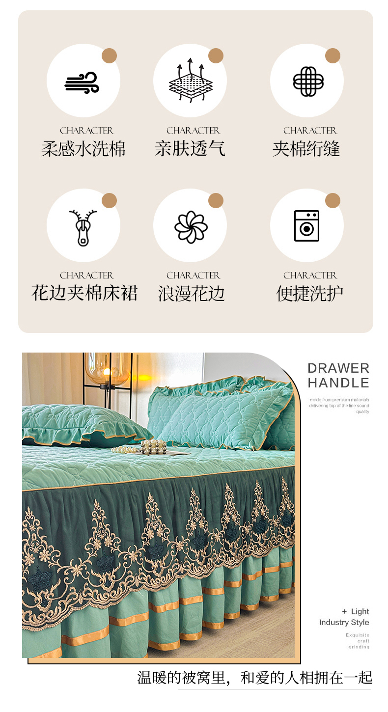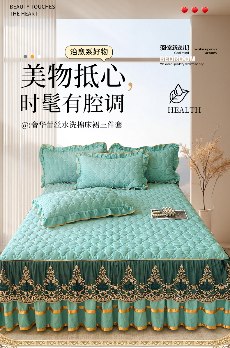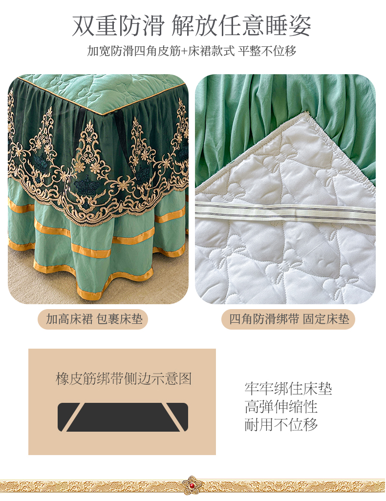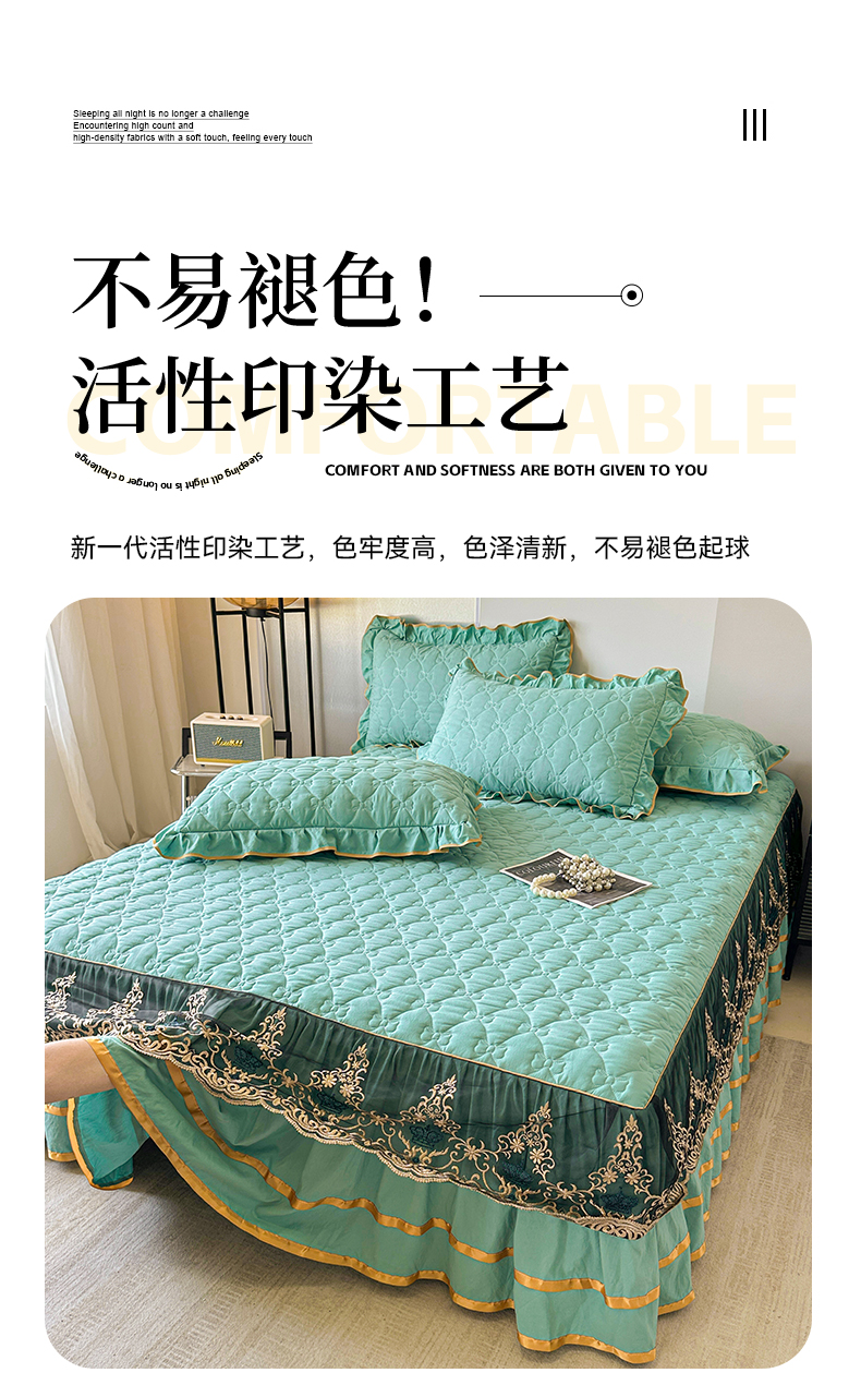 (总)屹成家纺2025新款水晶绒夹棉绗缝蕾丝床裙三件套(塞纳河畔)床裙单件起售价不低于105元,大红,豆沙,翡翠绿,粉玉,橄榄绿,蔚蓝,银灰