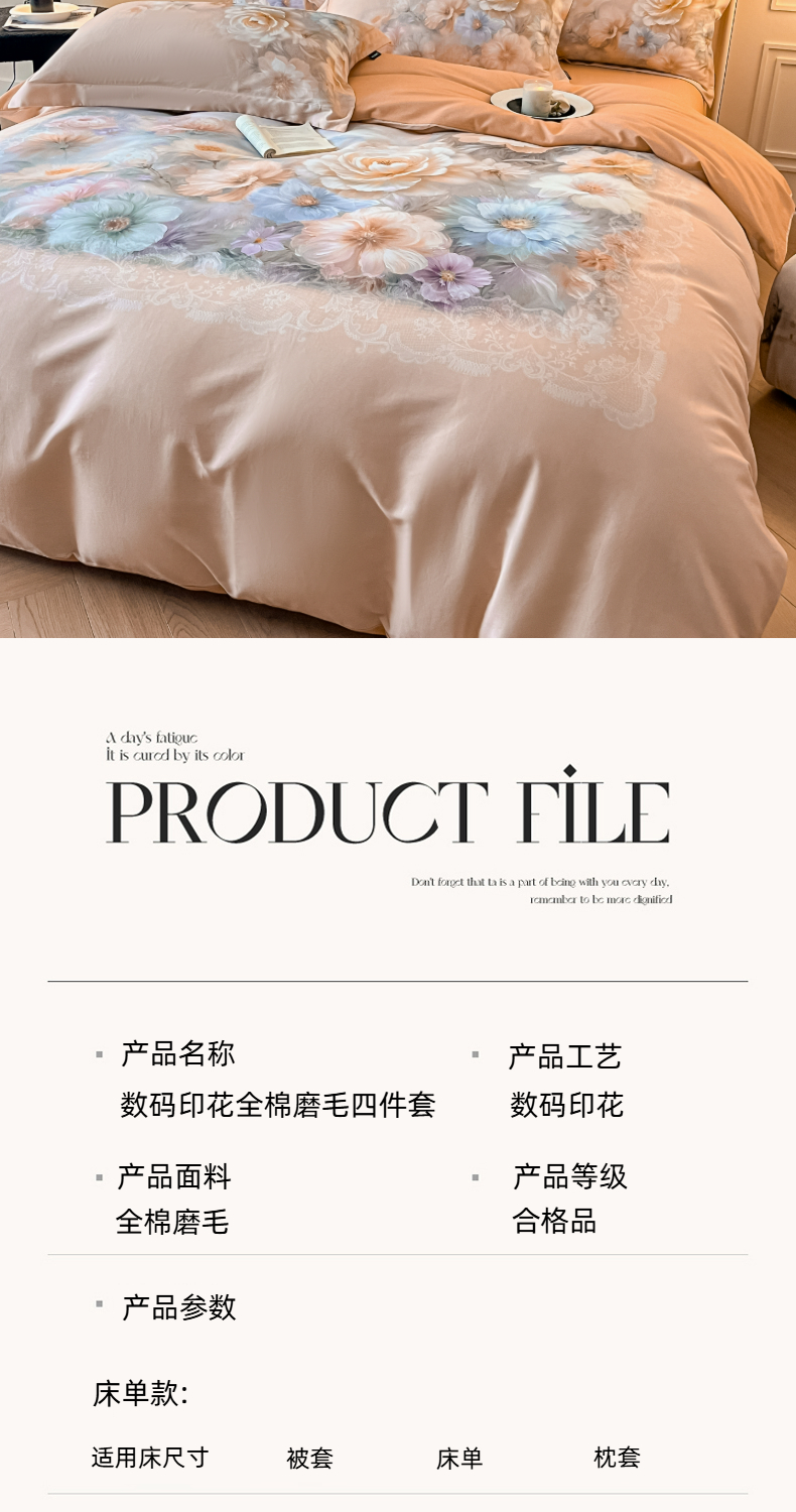 当前位置: 91家纺网 > 商品网购 > 床品套件 > 四件套 > 全棉普通四件套 > 禾时 2025新款全棉纯棉大版磨毛数码印花四件套(32x21磨毛) 淡雅幽香(桔)