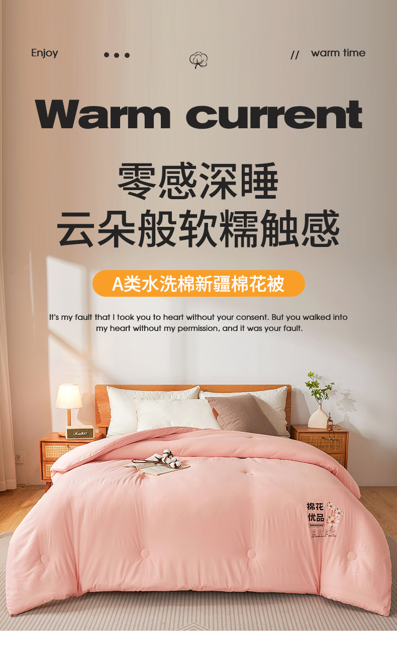 • 91家纺网 家纺一手货源 找家纺 仁凯家纺 2025新品A类新疆棉花被棉花优品被子被芯冬被春秋被学生被(提供买家秀检测报告) 温柔粉-优品