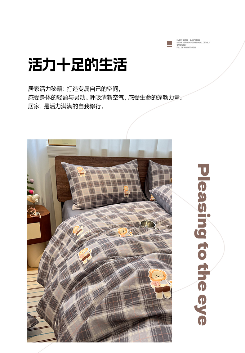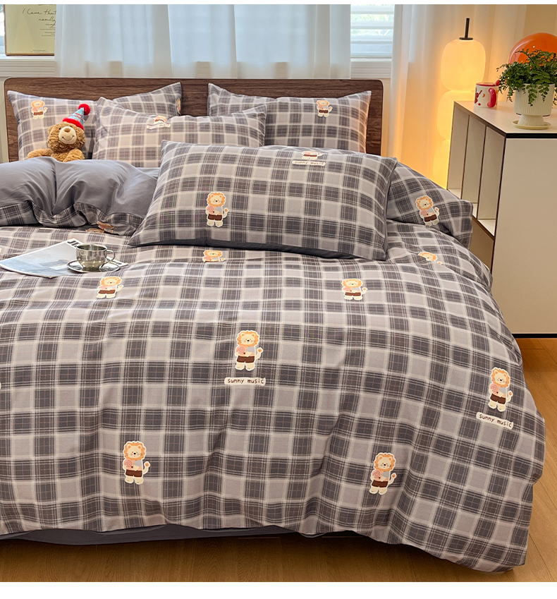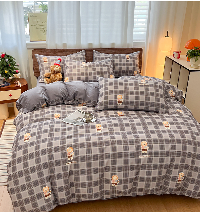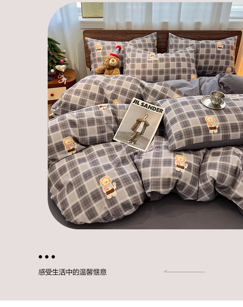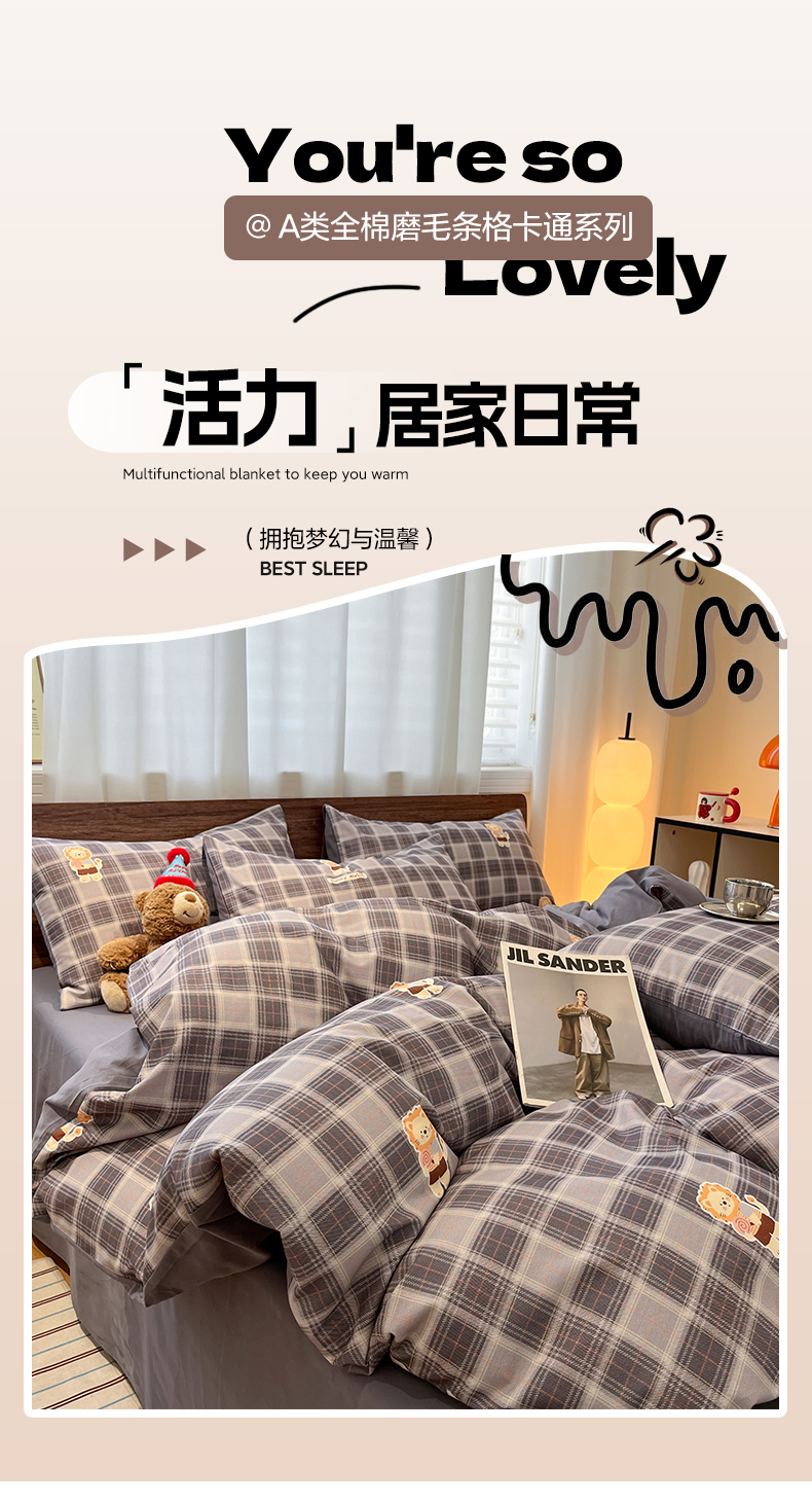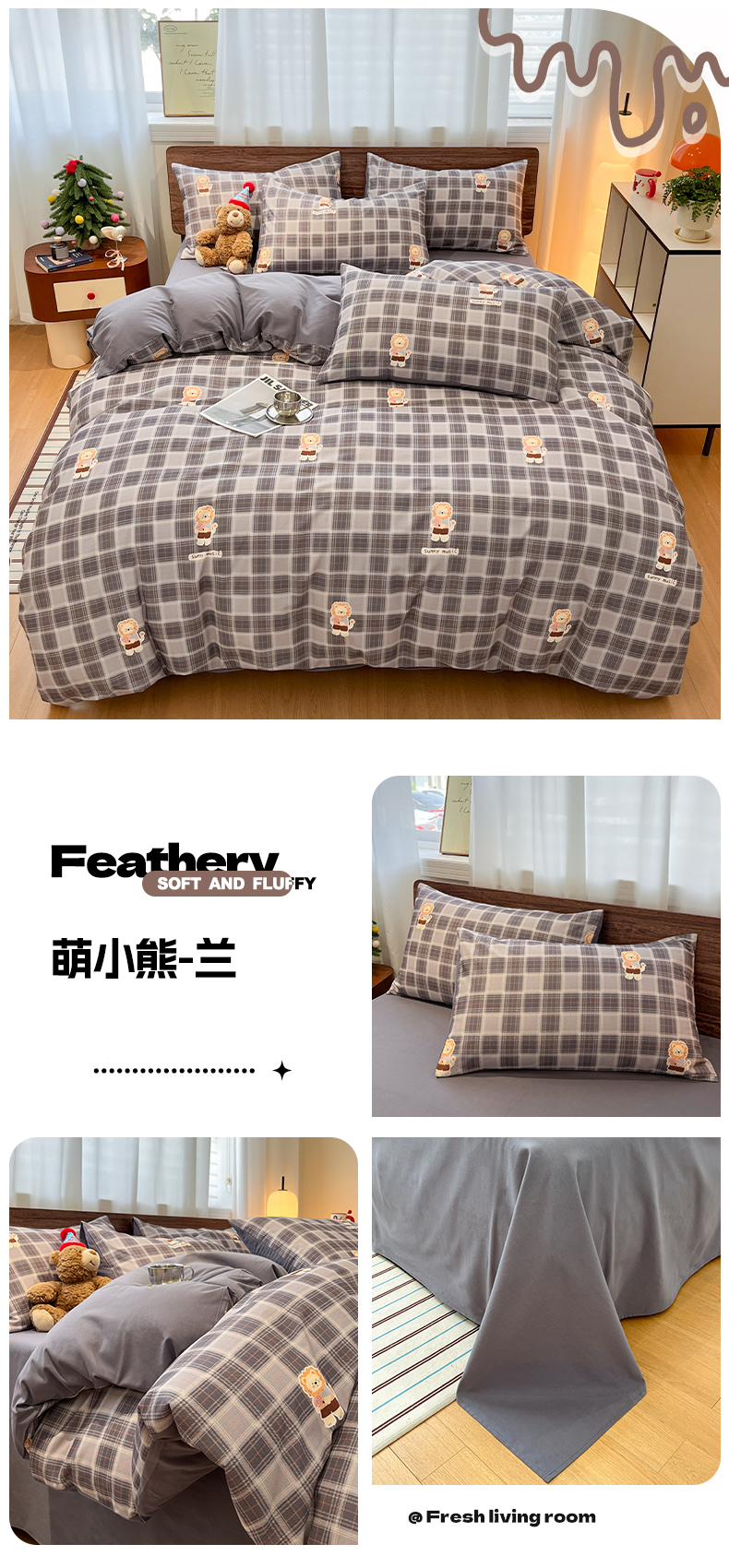 当前位置: 91家纺网 > 商品网购 > 床品套件 > 四件套 > 全棉普通四件套 > 莱登卡奴 2025新款A类100%全棉磨毛条格卡通系列四件套 萌小熊-兰