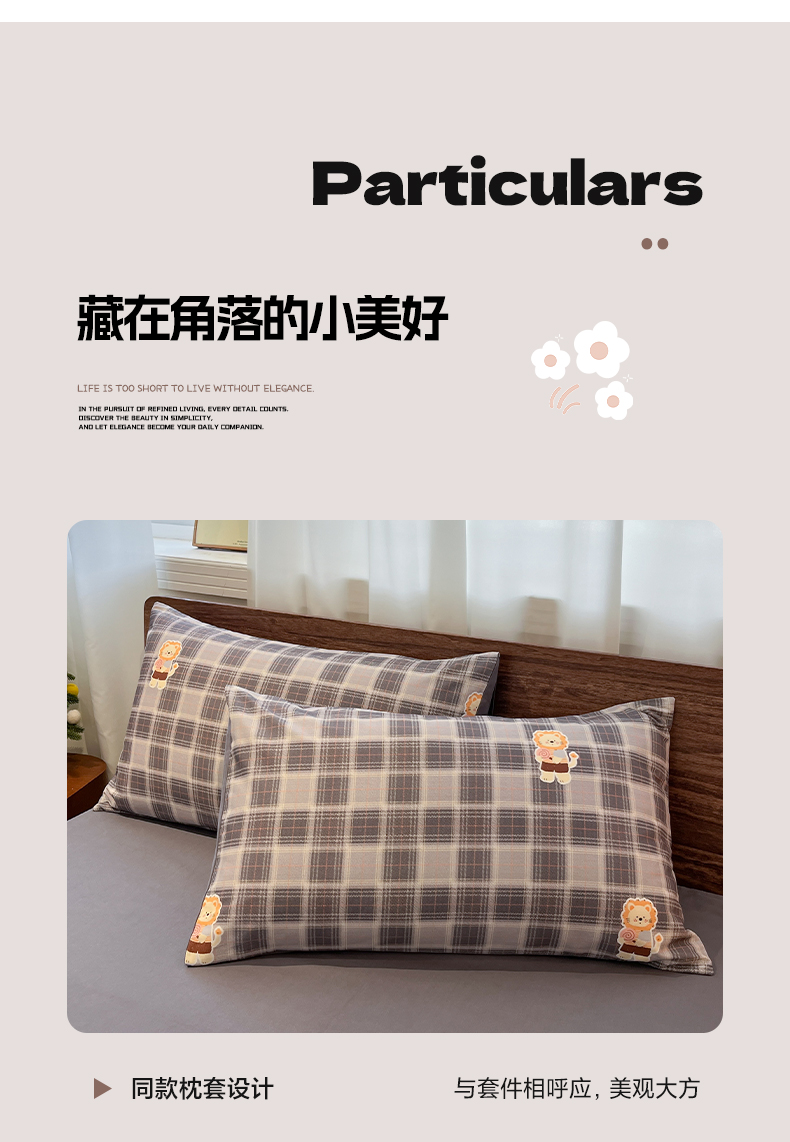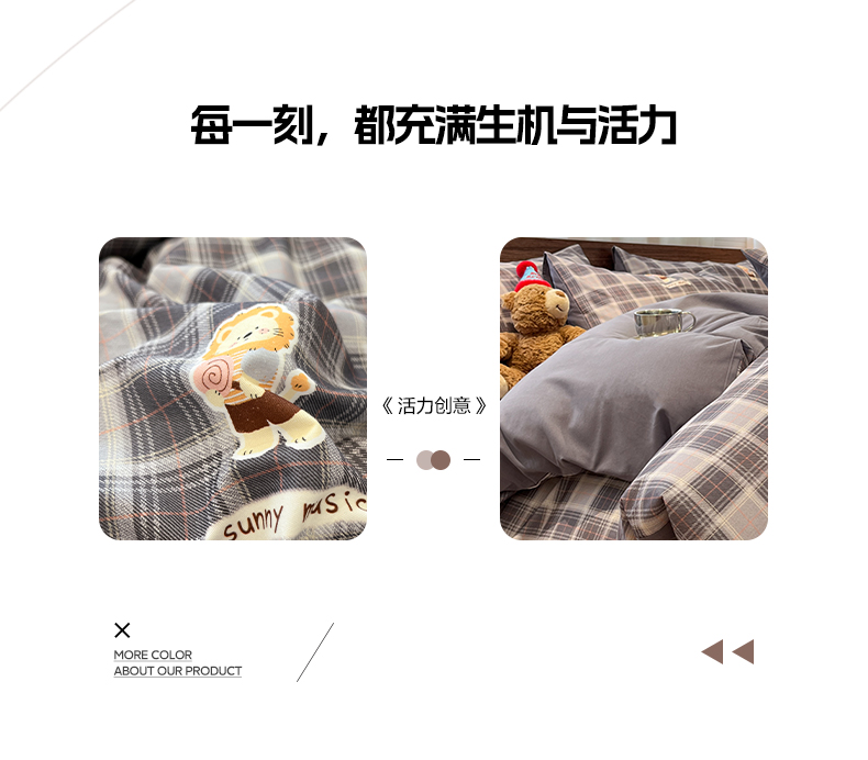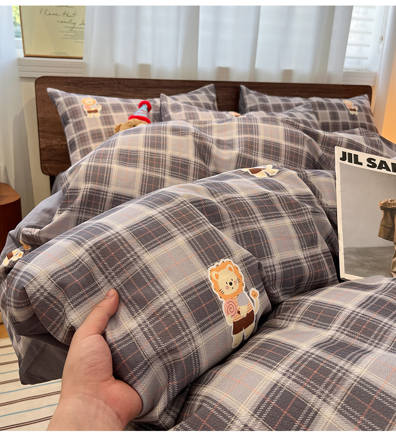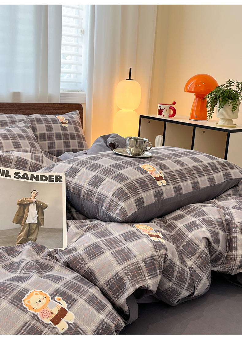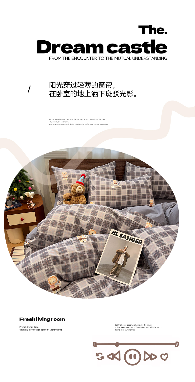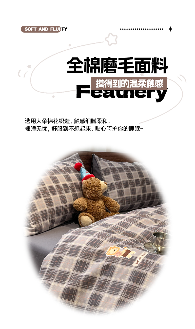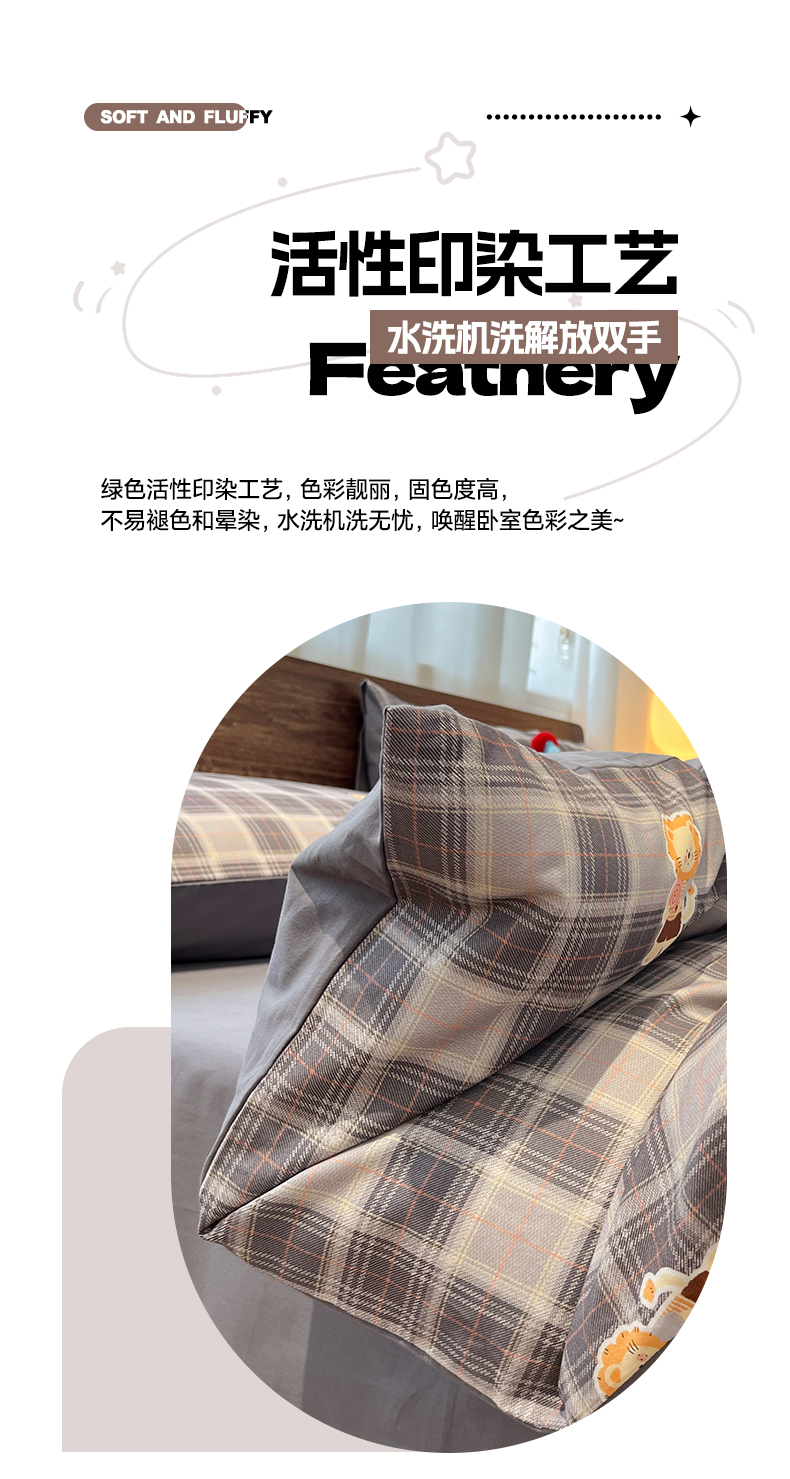 当前位置: 91家纺网 > 商品网购 > 床品套件 > 四件套 > 全棉普通四件套 > 莱登卡奴 2025新款A类100%全棉磨毛条格卡通系列四件套 萌小熊-兰
