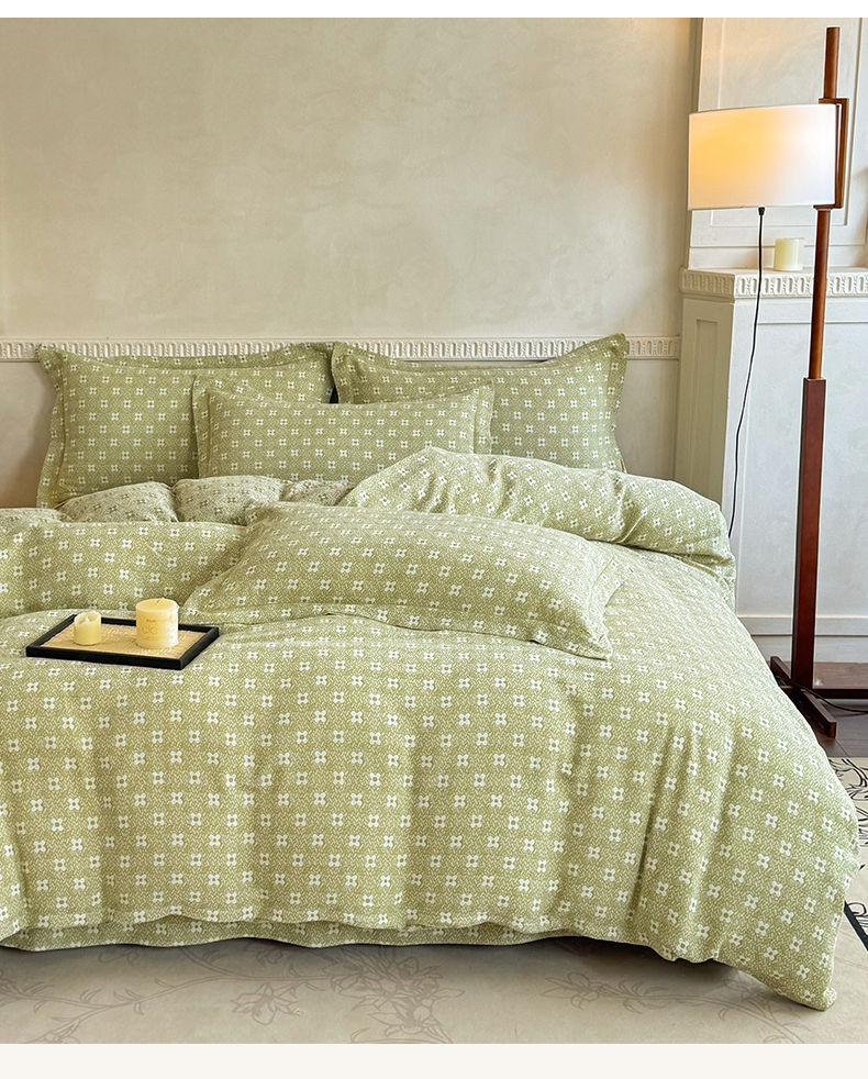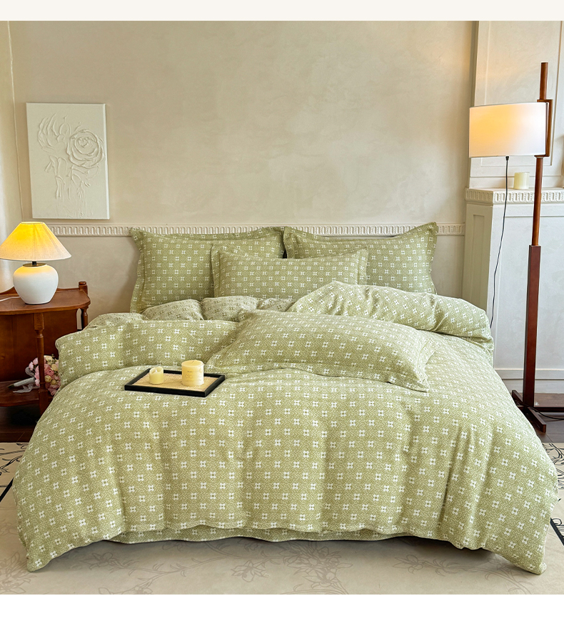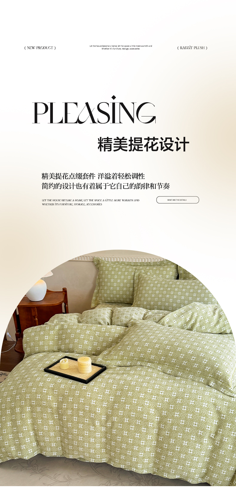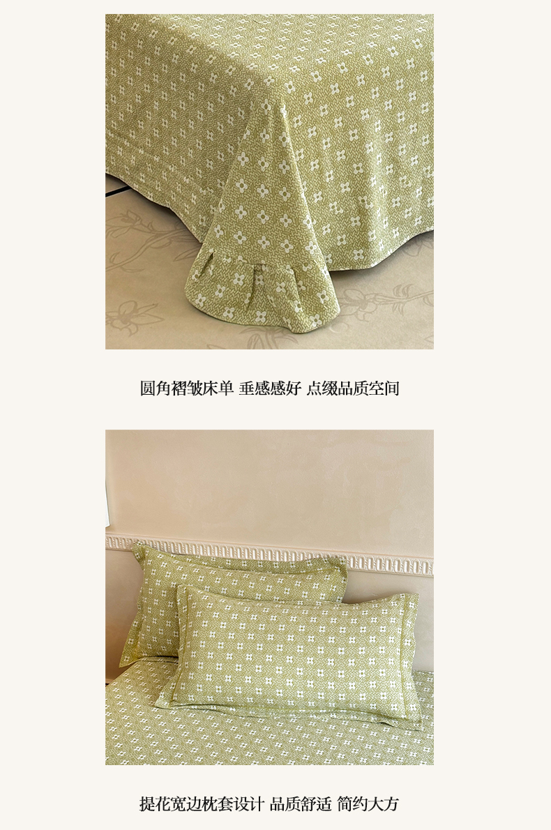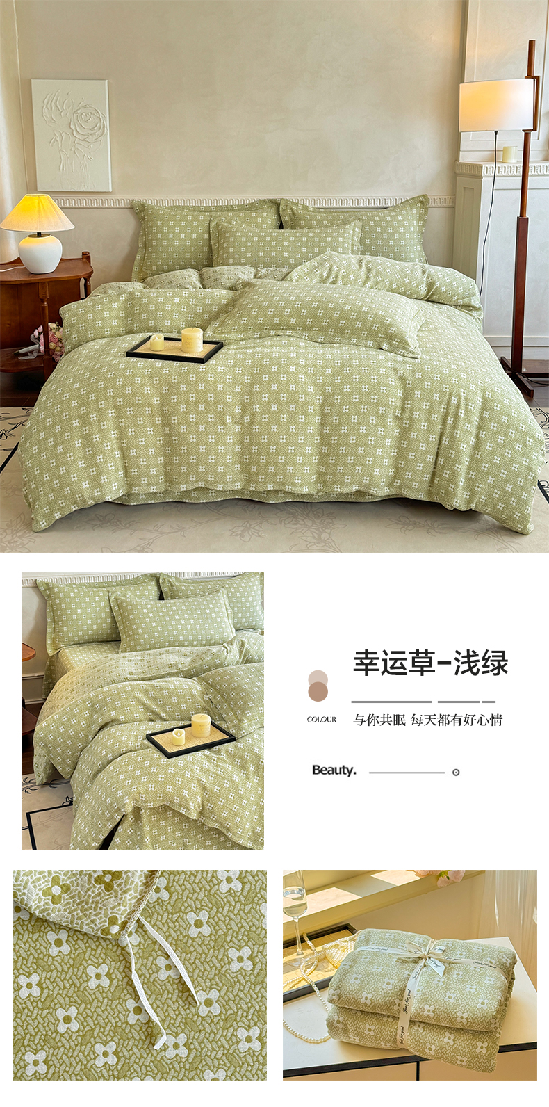 当前位置: 91家纺网 > 商品网购 > 床品套件 > 四件套 > 双层纱四件套 > 江南春家纺 【幻-暖纱】2025新款A类100%全棉色织提花双层纱四件套 【幻-暖纱】幸运草-浅绿