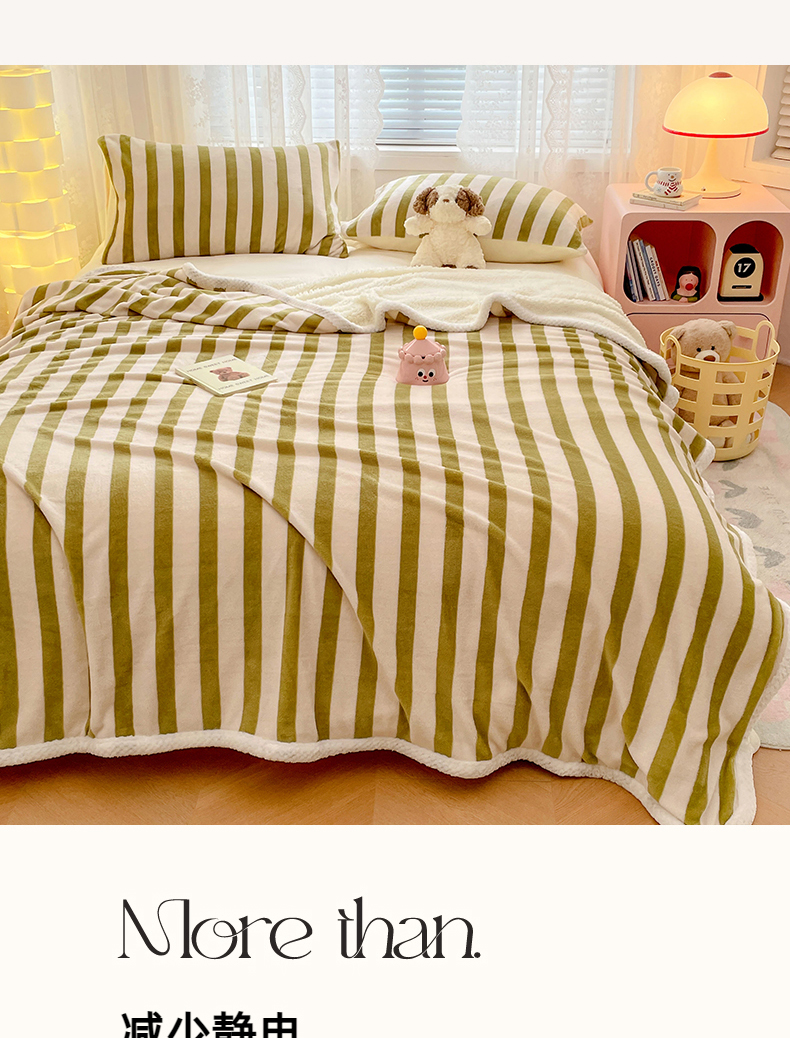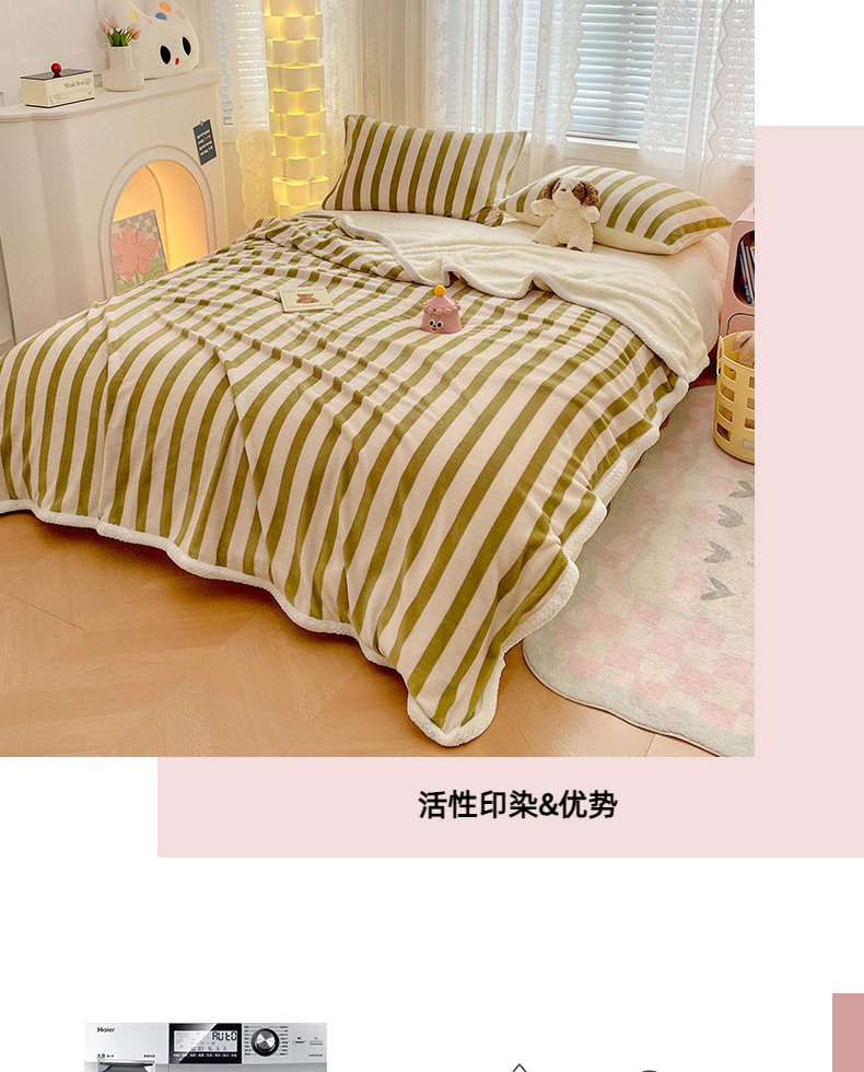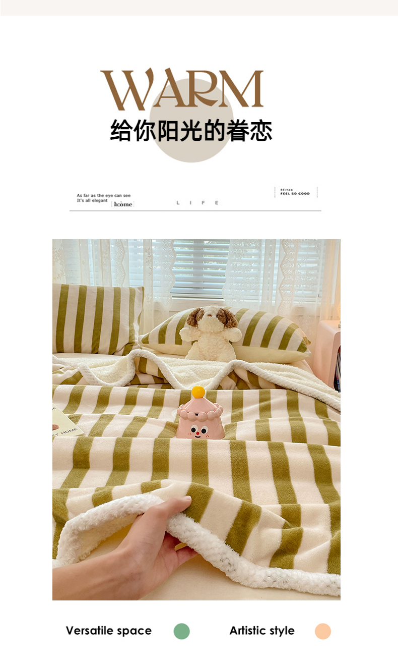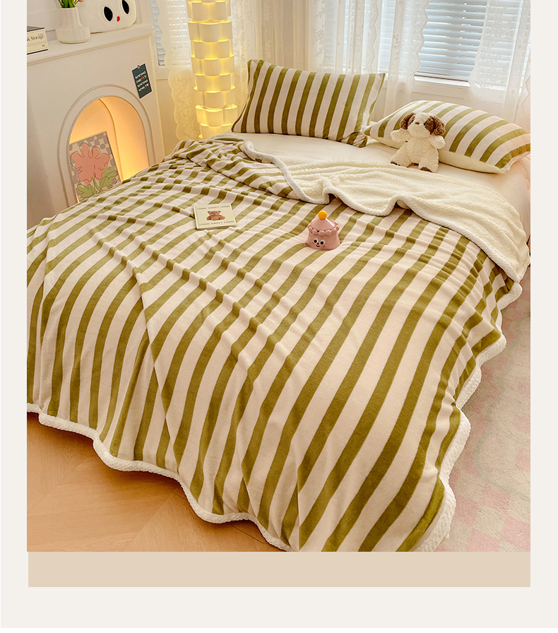 锦润家纺 2025年新款牛奶绒羊羔绒AB版包边毛毯浅色绿条