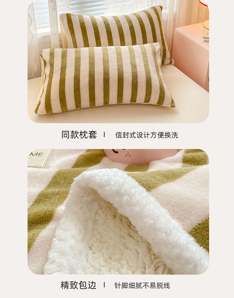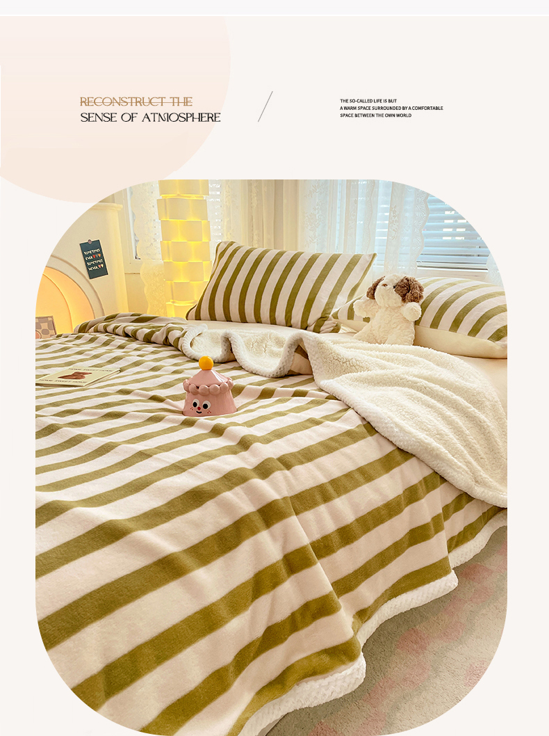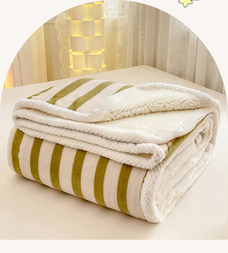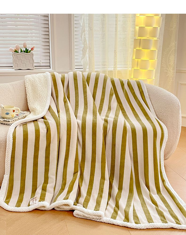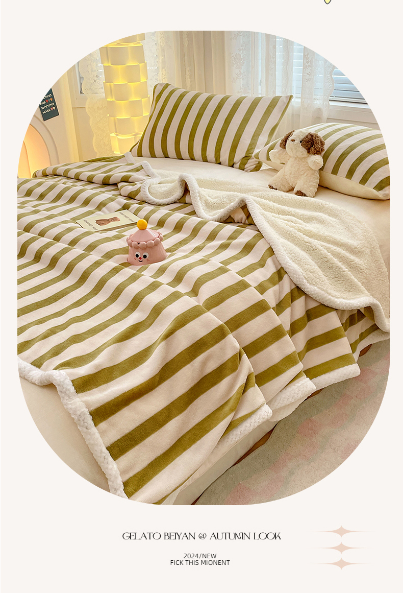 锦润家纺 2025年新款牛奶绒羊羔绒AB版包边毛毯浅色绿条