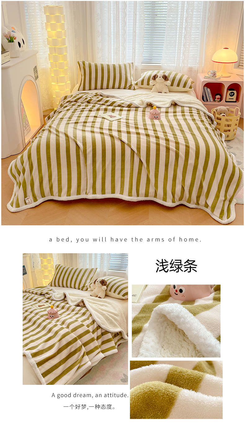 商品名称:锦润家纺 2025年新款牛奶绒羊羔绒AB版包边毛毯浅色绿条