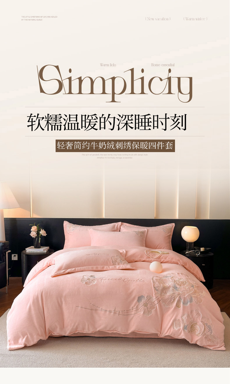 当前位置: 91家纺网 > 商品网购 > 床品套件 > 四件套 > 牛奶绒四件套 > 菲儿家纺 2025新款轻奢简约牛奶绒刺绣保暖四件套 如梦绒-天蓝