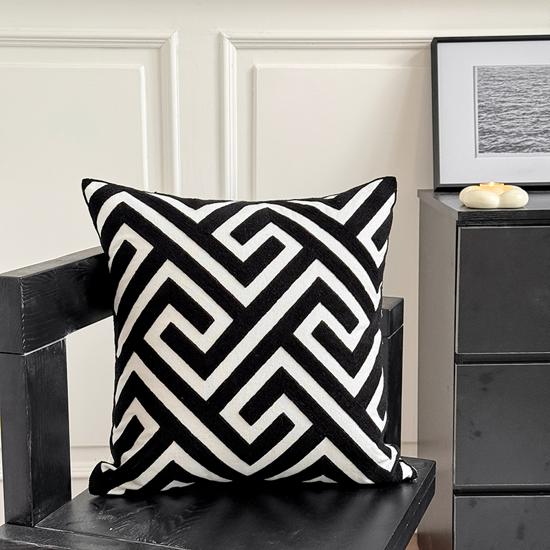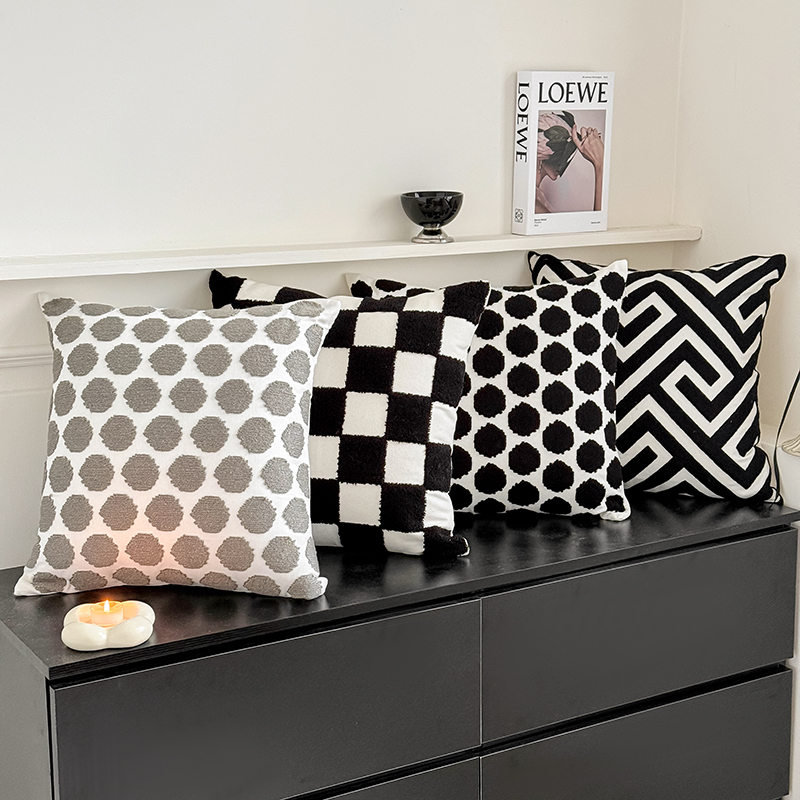 诺可 2025新款全棉黑白简约系毛巾绣抱枕枕头枕芯 黑白简约系-四方格